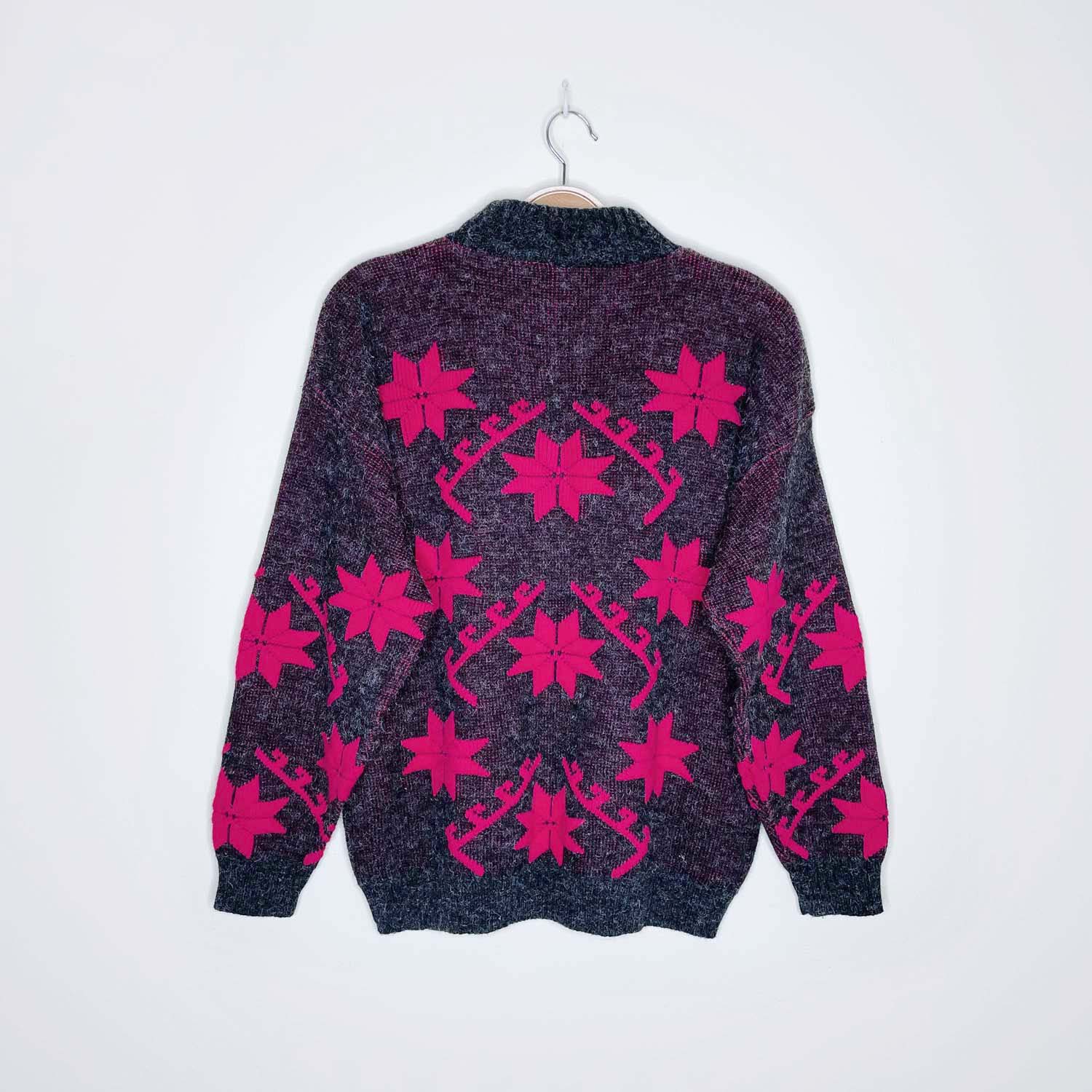 vintage kate collins hot pink snowflake mock neck sweater - size small