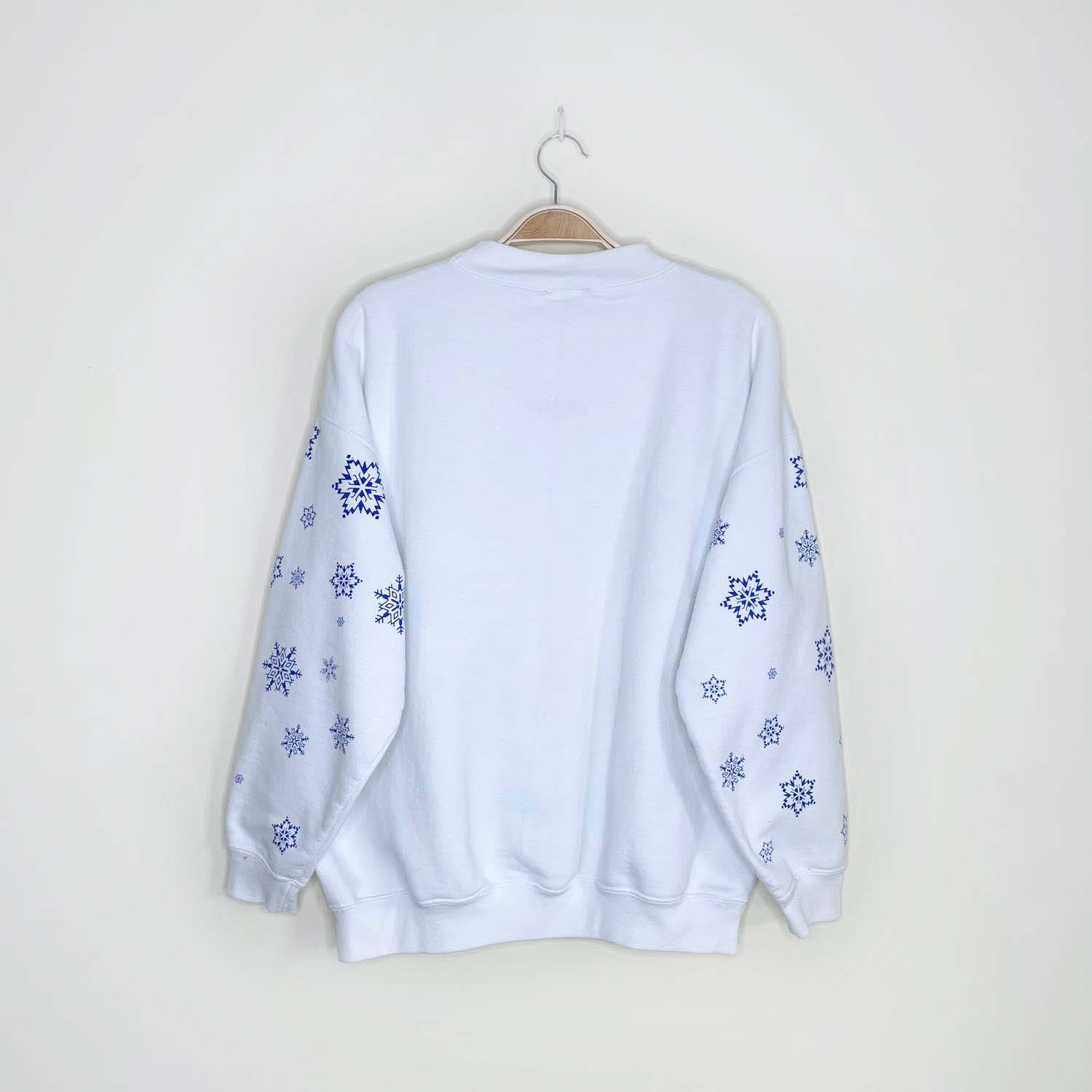 vintage lady footlocker reindeer cottage puff graphic crew - size large