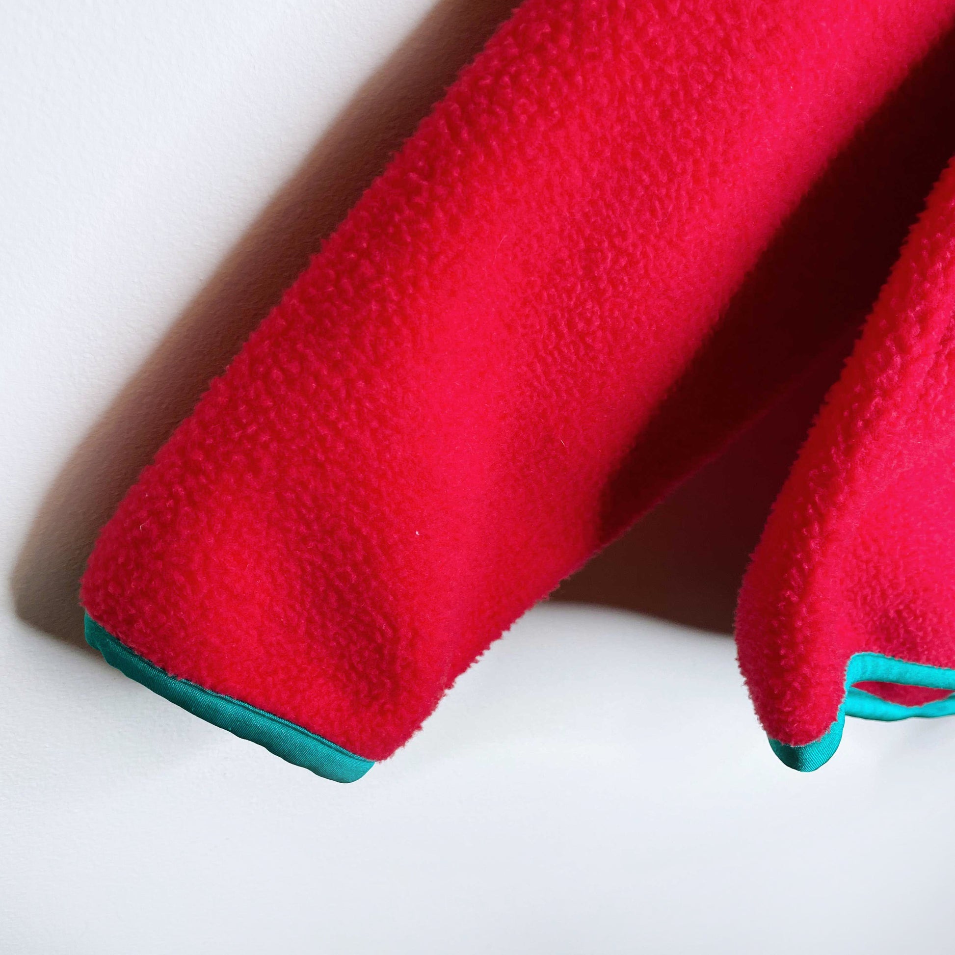 Item Description: This rare fleece from Louis Garneau features a thick red fleece shell with kelly green trim - the perfect holiday ski sweater if you asked me. Retro enough to be vintage, but simple enough to still look modern, this fleece sweater is timeless. 100% polyester
