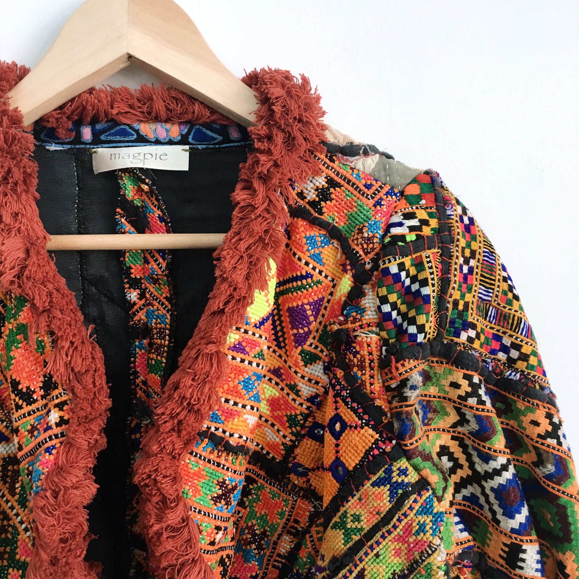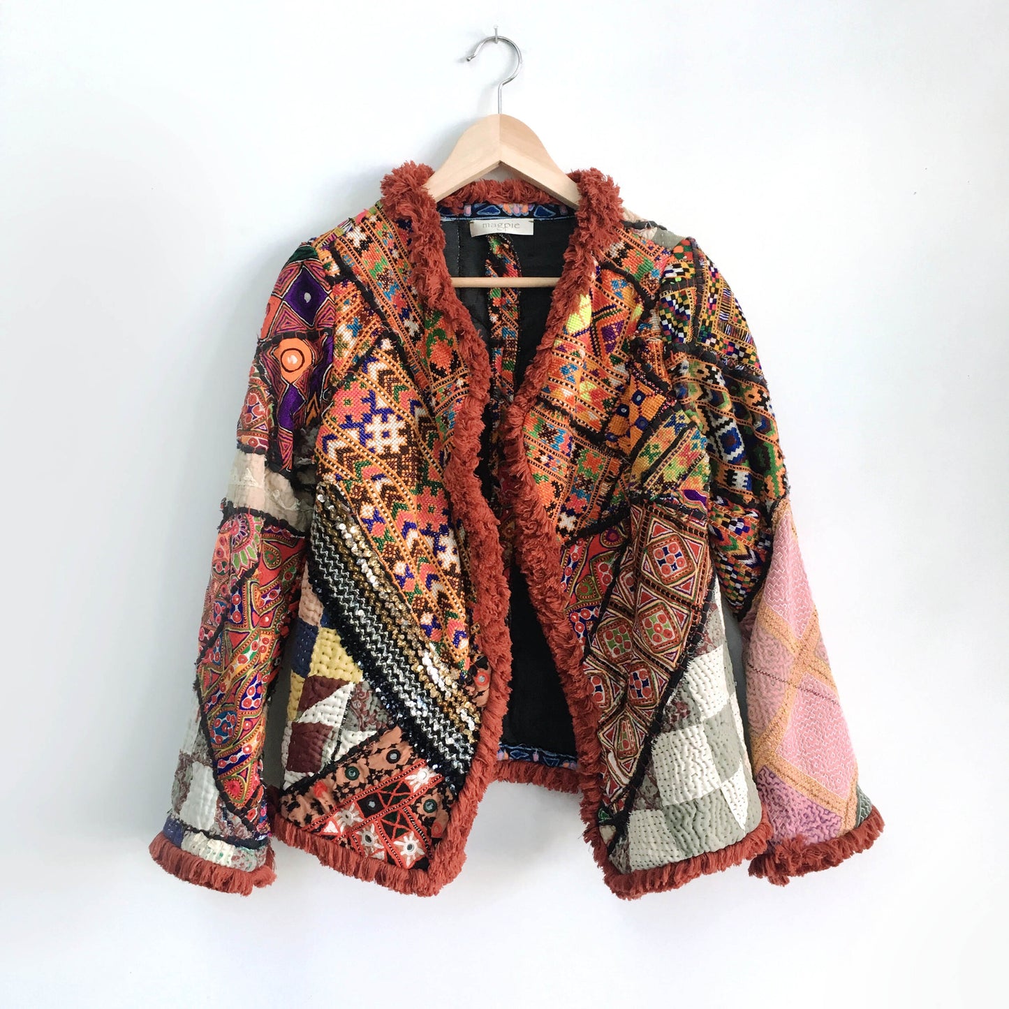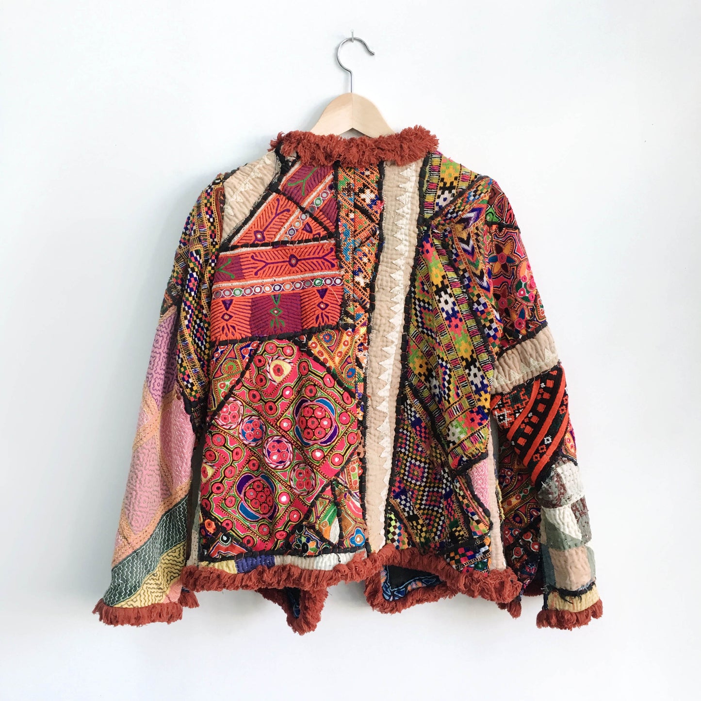 Item Description: This jacket is boho to the extreme - made by hand with intricate embroideries and fabrics brought together in one beautiful, fringed bohemian jacket.