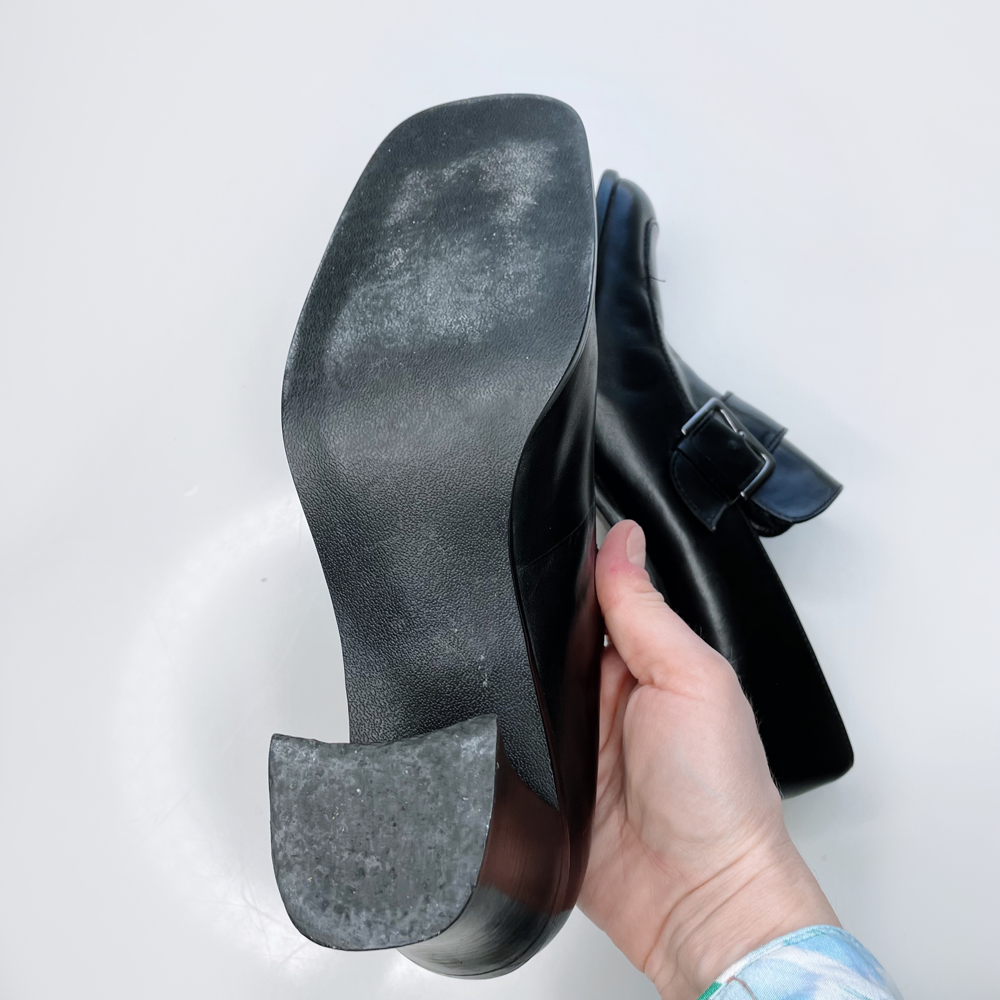 vintage nine west black leather brixton buckled heeled loafers - size 9.5