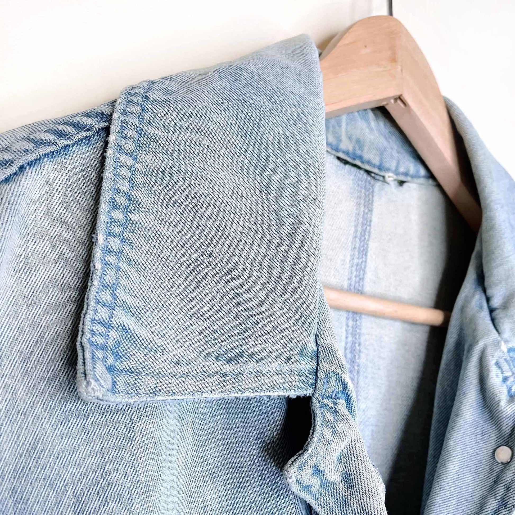 Condition: AS-IS - great distressed condition, button holes are a bit too big now, a loose closure