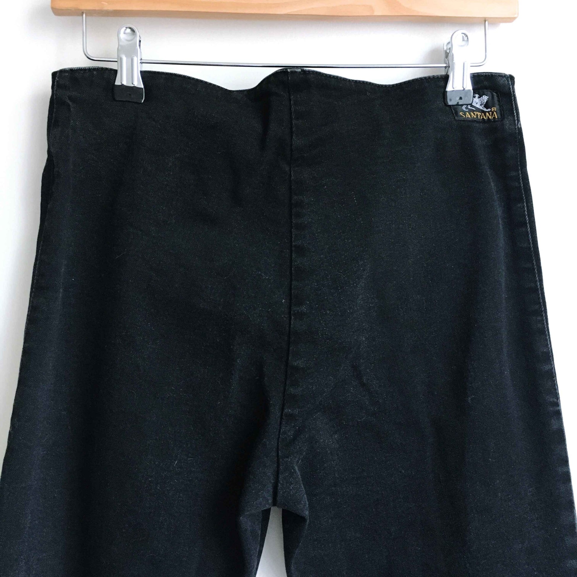 Item Description: These black high rise boot cut jeans from Parasuco are straight out of the 2000’s with front slit pockets and lace up front. 98% cotton 2% spandex