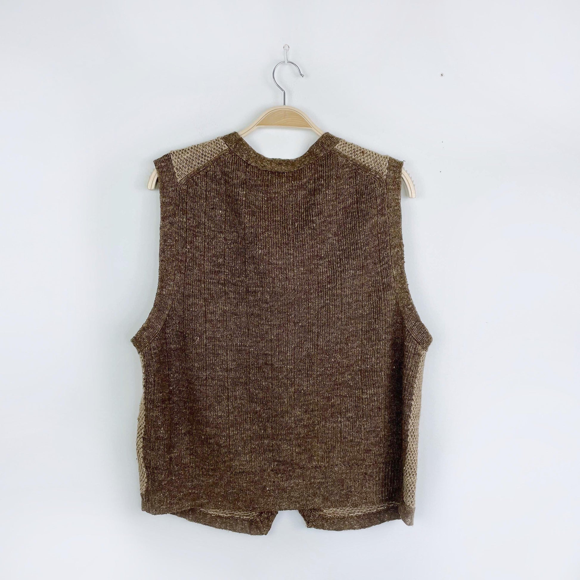 Item description: Um...okay. What? This vest has a gorgeous, luxurious texture with it's blend of linen and silk. And the two-tone is giving major retro, private club vibes. Very Ralph Lauren. 80% linen 20% silk