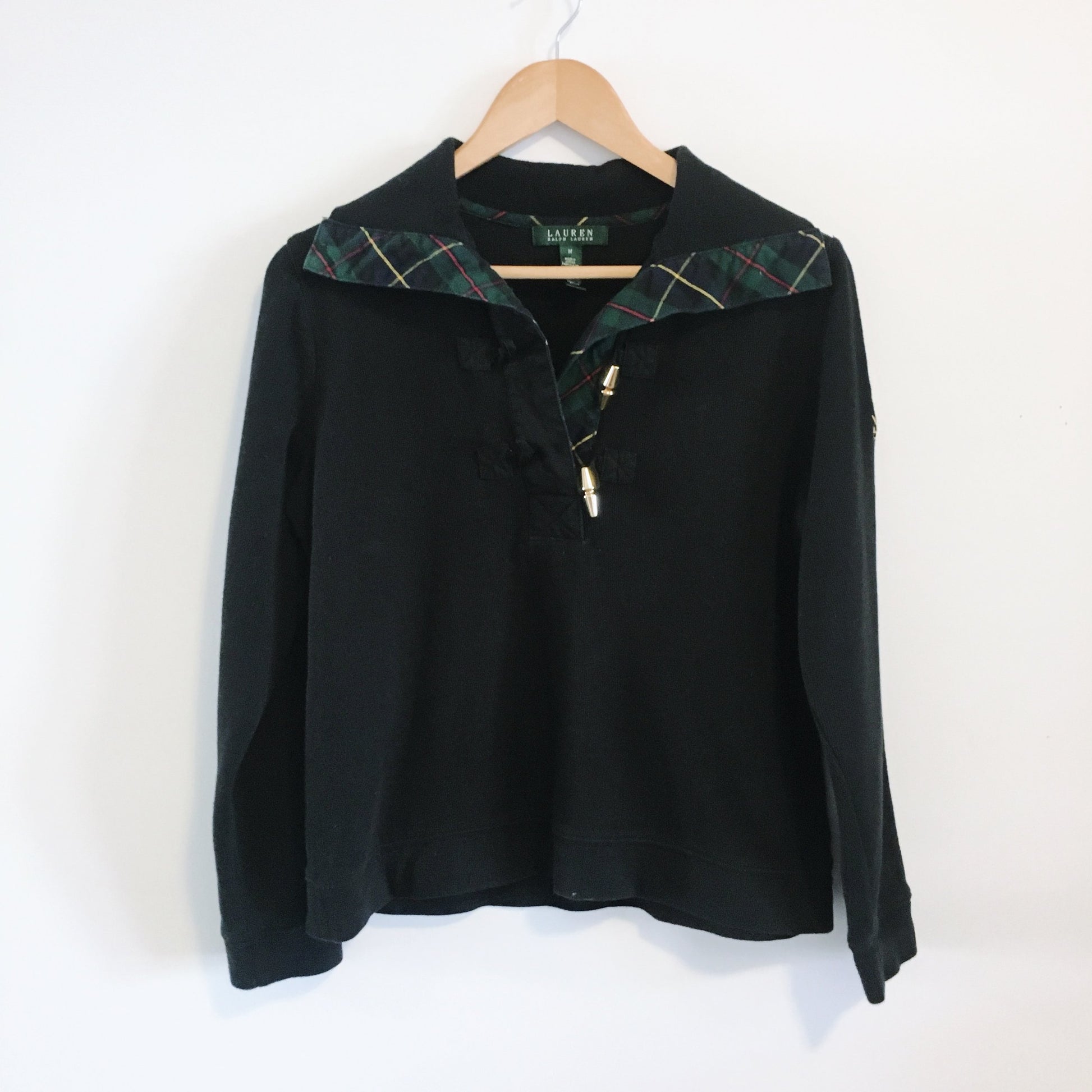 Item Description: Introduced in 1972, the Polo shirt now comes in a variety of colors and styles but remains just as iconic as the original. This vintage cotton long sleeve version features a glorious embroidered emblem and a contrast tartan collar with gold toggle buttons. Style yours with almost anything, from jeans to a high waisted a-line skirt.