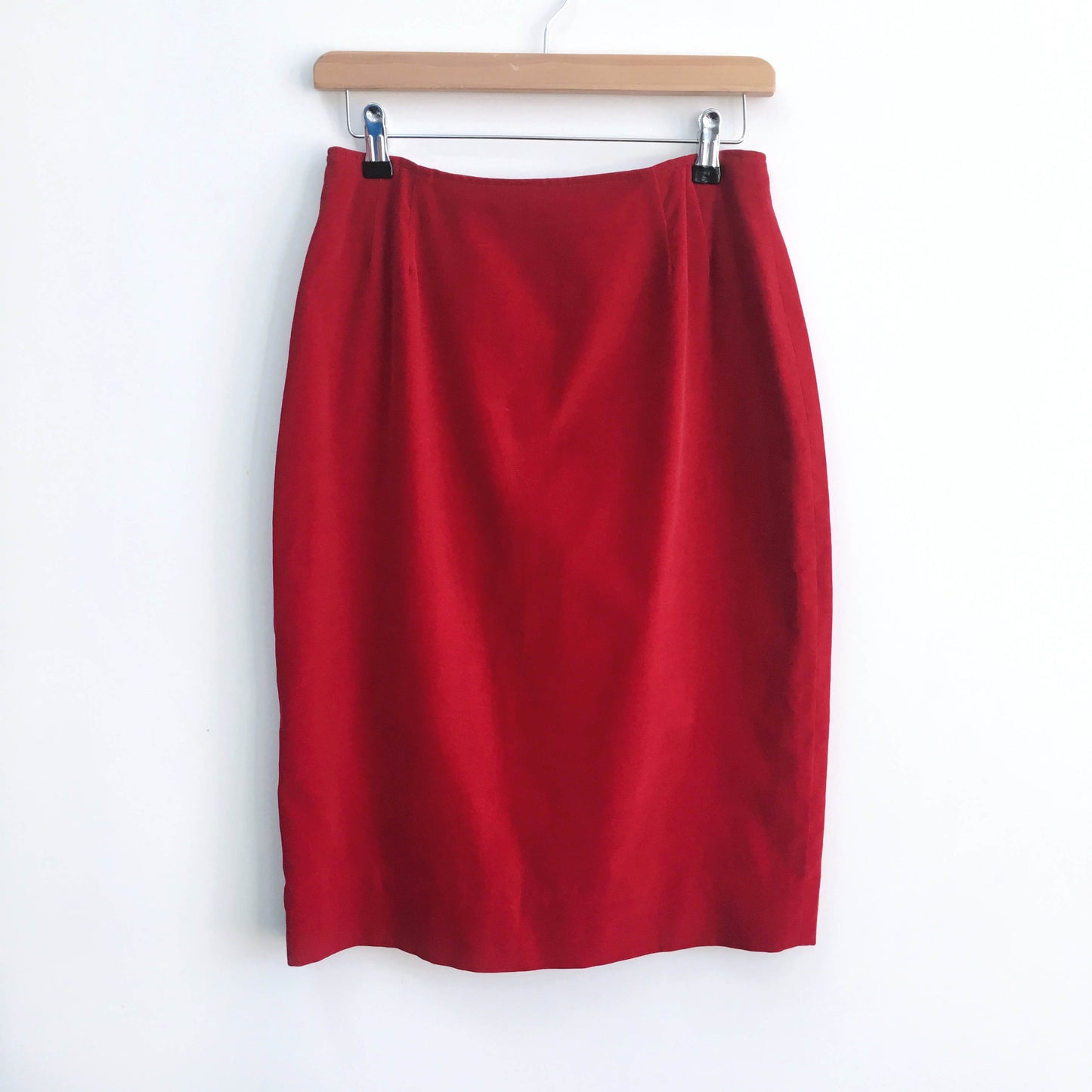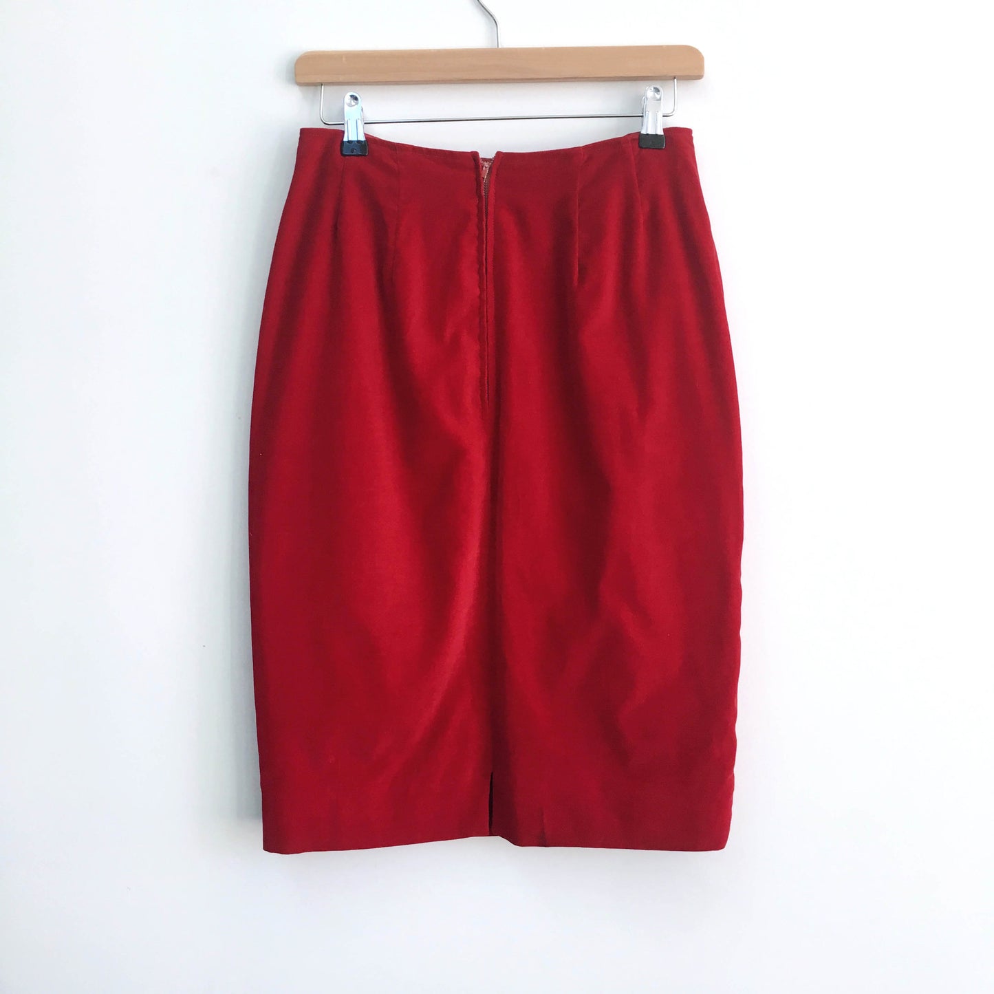 Item Description: I know this is coming at you pretty early, but this classic high waisted pencil mini is going to be so hot for the holidays. So many possibilities, so many occasions. Back zipper.