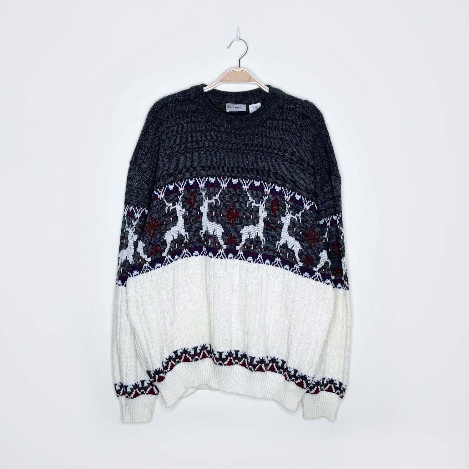 vintage rob winter reindeer grandpa holiday sweater - size xl