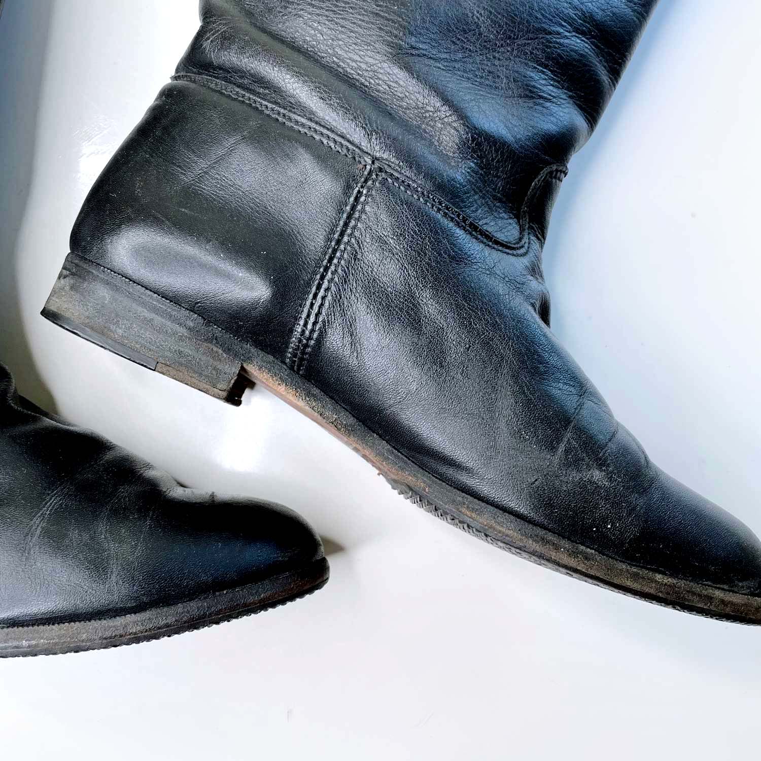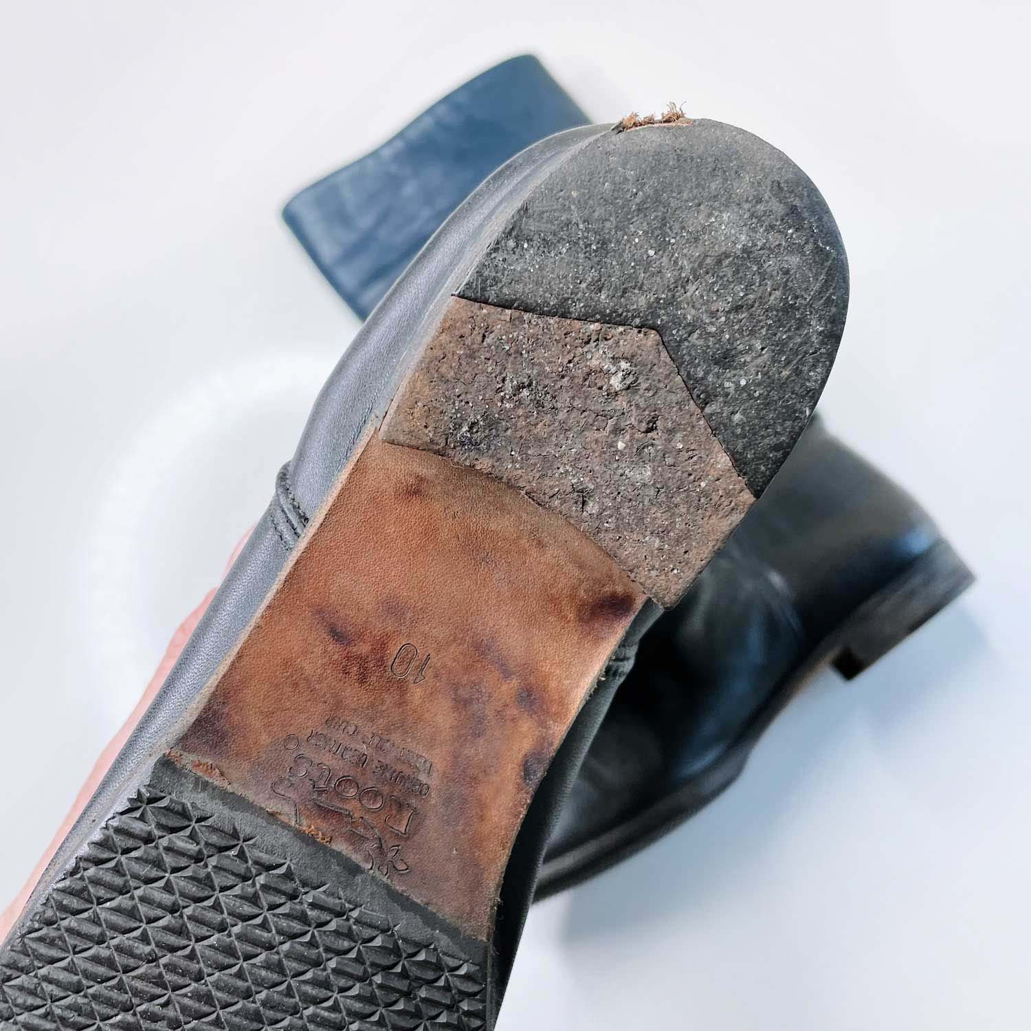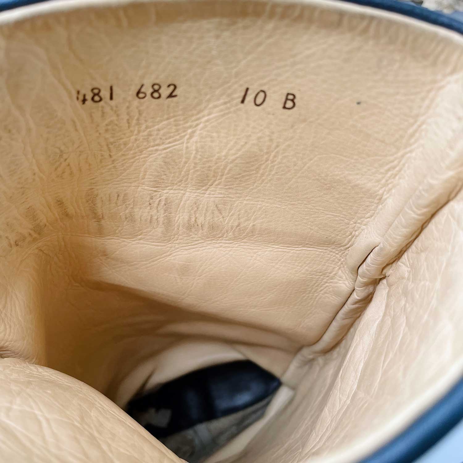 Measurements: 10 3/4" toe to heel measured on sole, 1/2" heel 15" top of opening to heel, 7" across top of opening