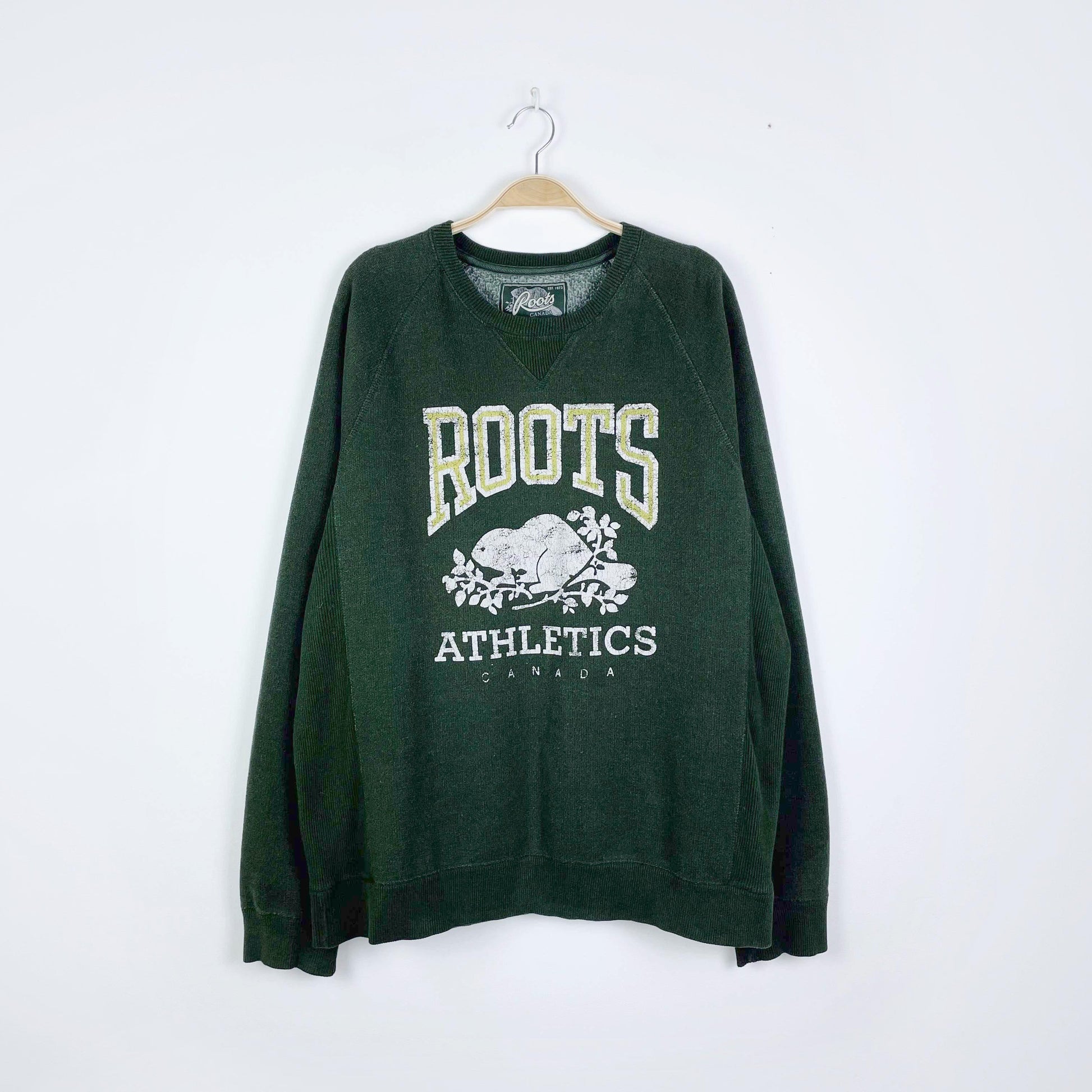 vintage roots green distressed logo crew - size xxl