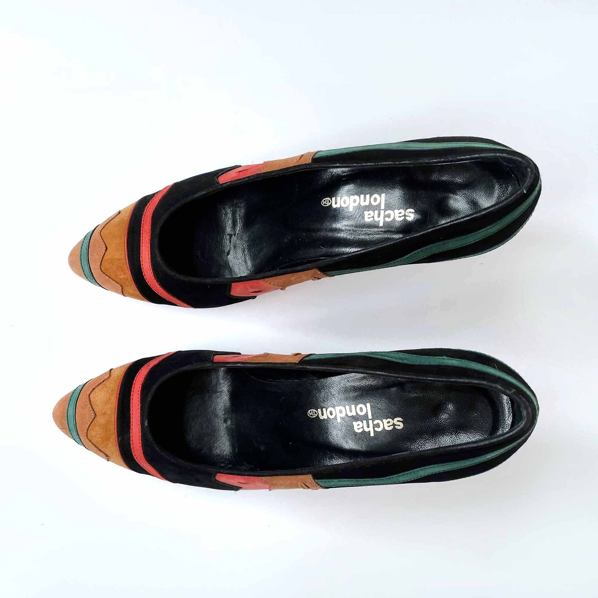 vintage sacha london suede pattern cut out heel pumps - size 7