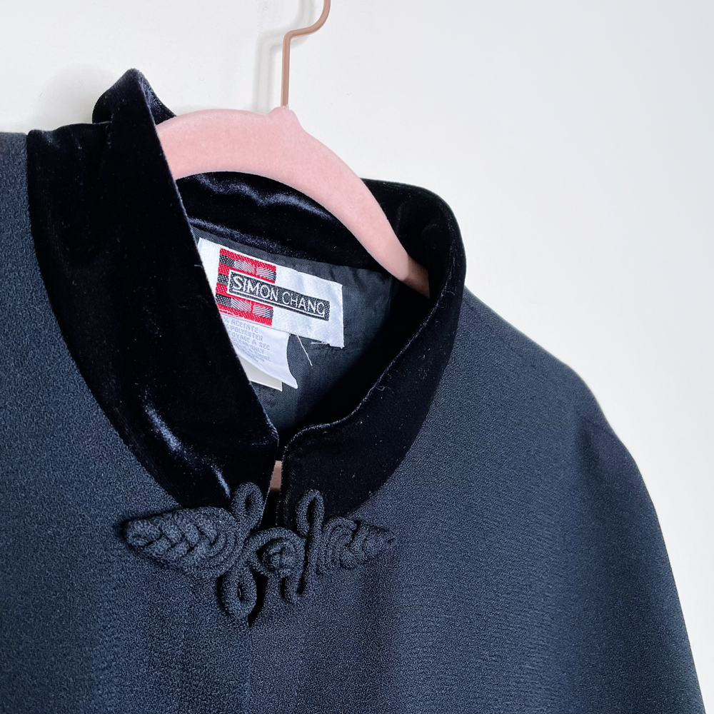 vintage simon chang black velvet trimmed cape qipao button - OS