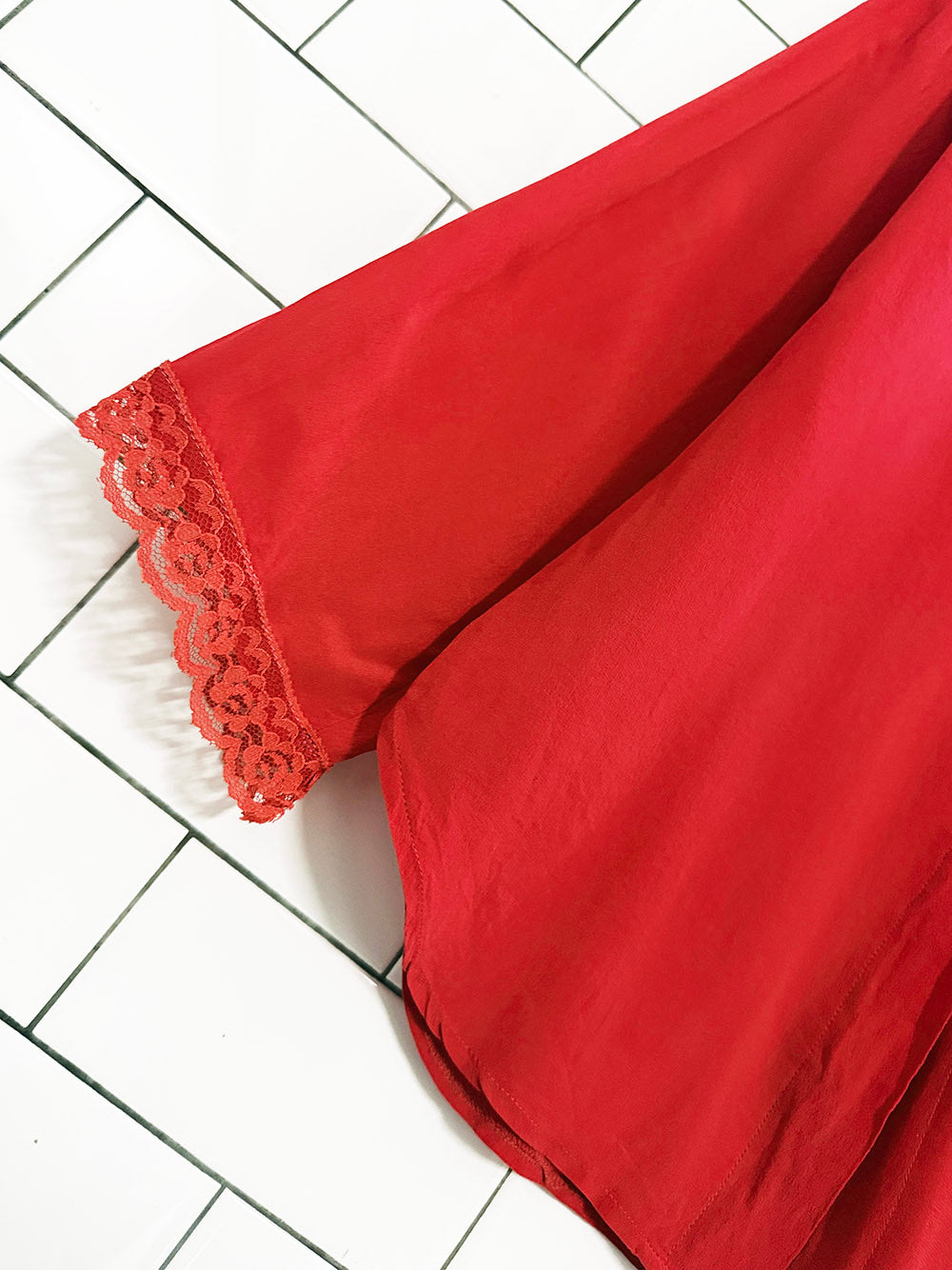vintage 90s sophisticates 100% silk lace trim blouse
