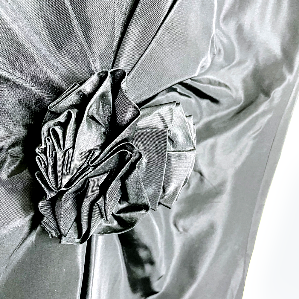 vintage wayne clarke black taffeta rosette mermaid maxi skirt - size 8
