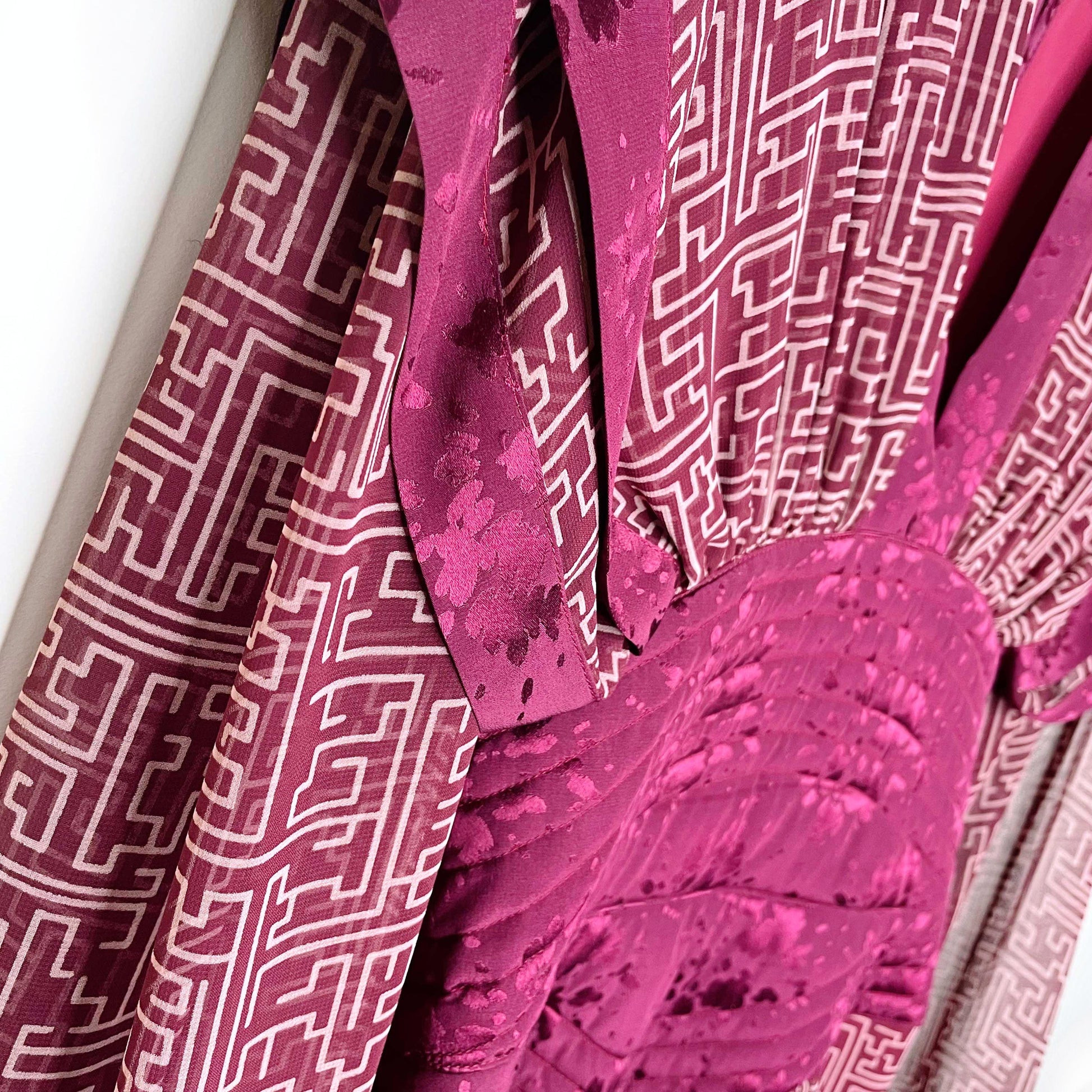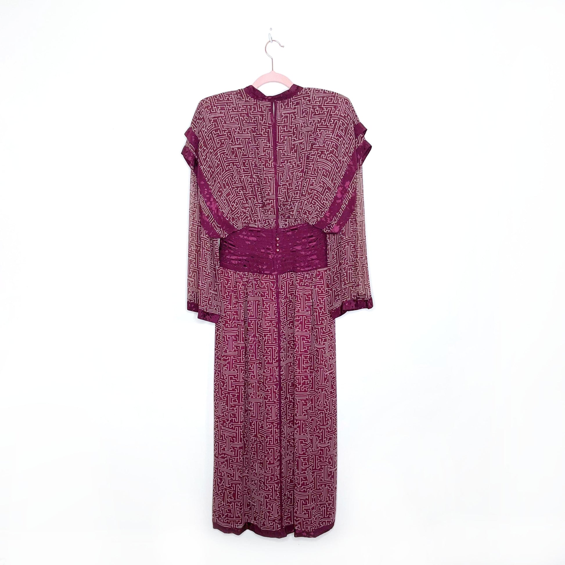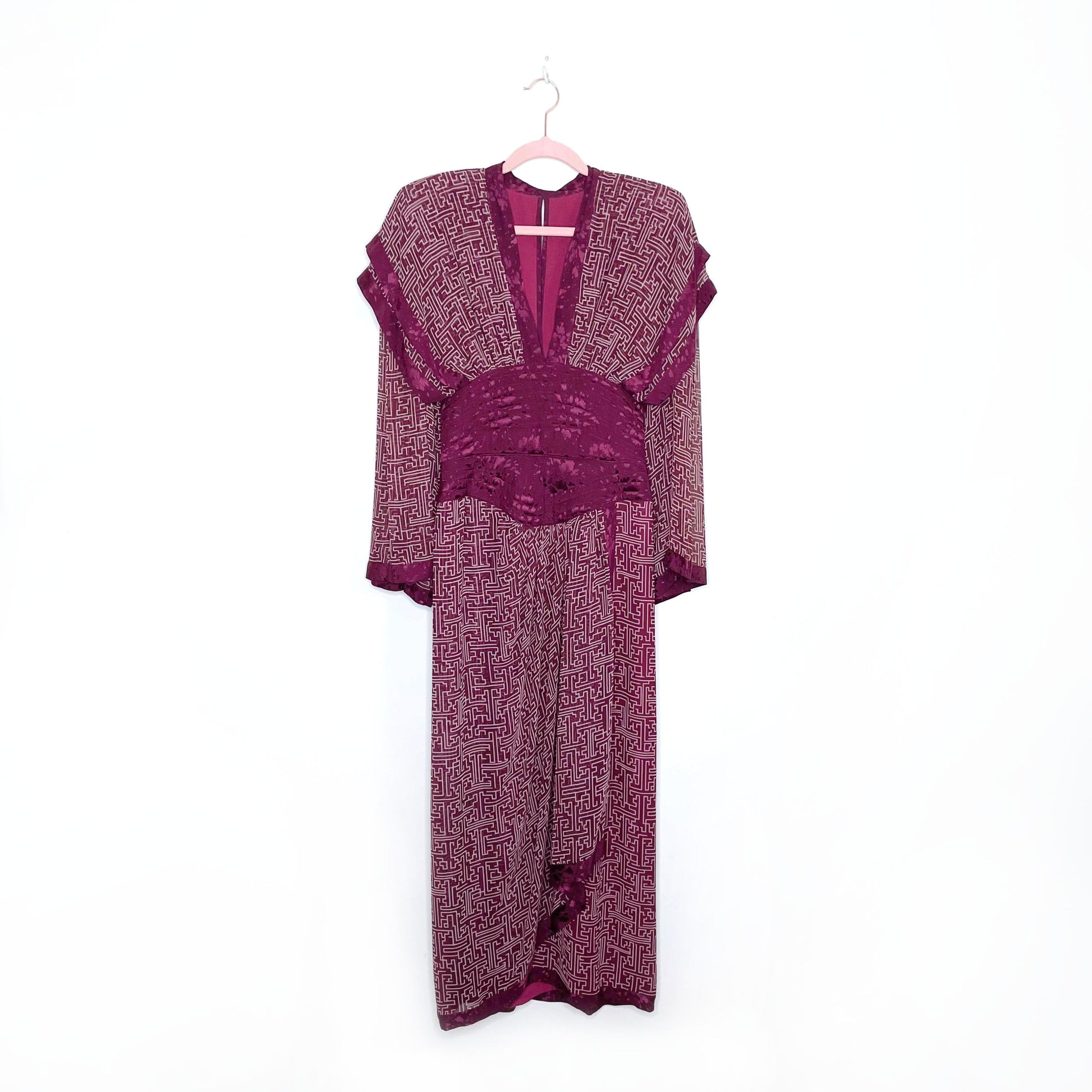 vintage wayne clarke silk chiffon low cut kimono dress - size 8