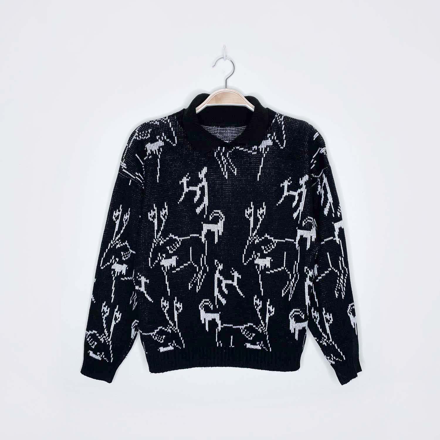 vintage winter frisky swiss mountain goat collared knit - size small