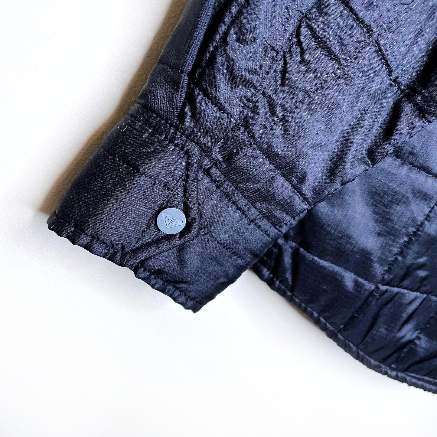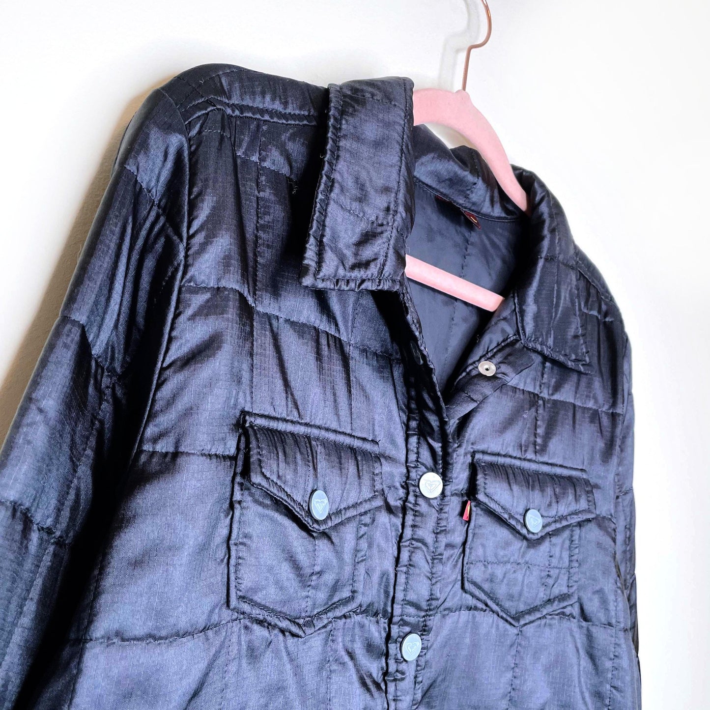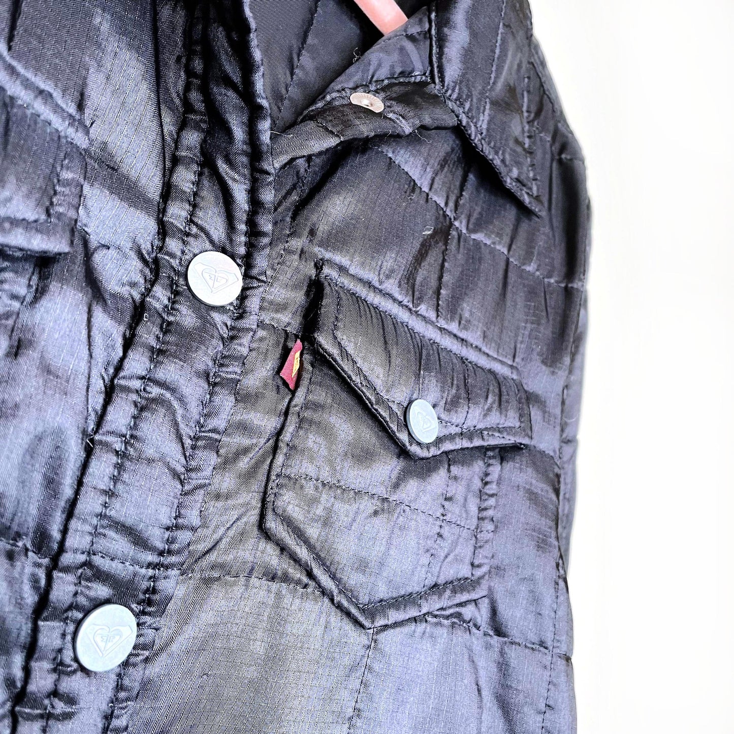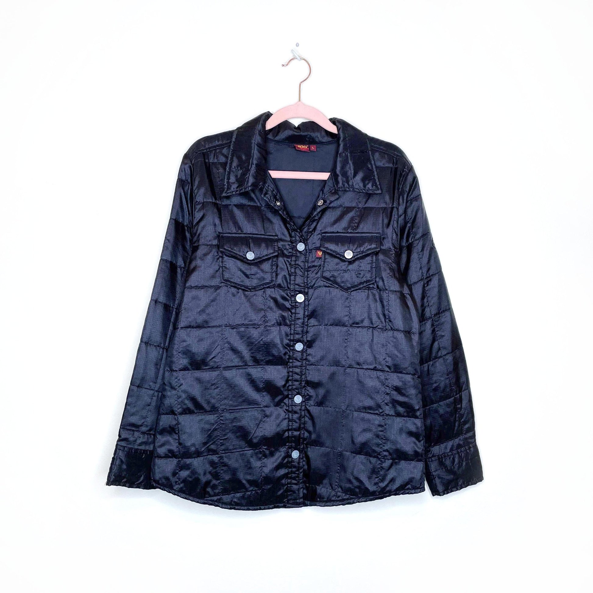 vintage y2k roxy black quilted snap button shacket - size large