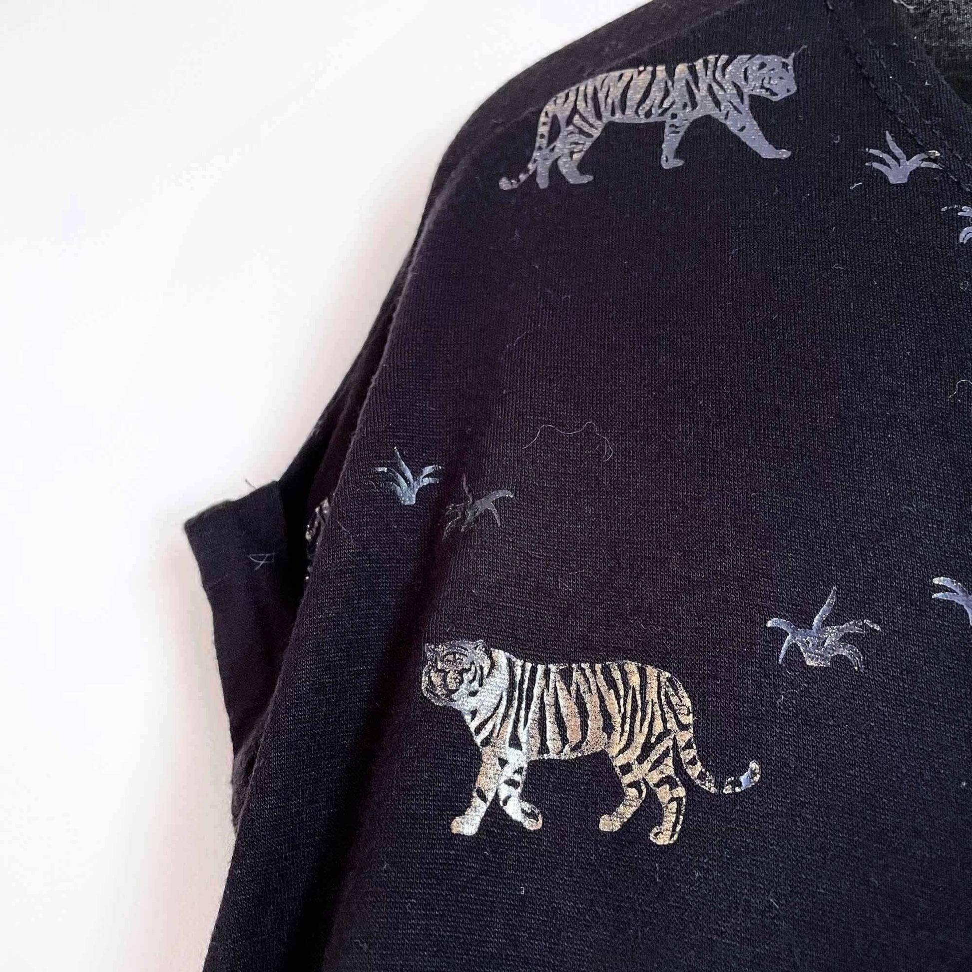 Condition: GOOD 8/10 - some of the gold has tarnished off on a few tigers and two tiny holes on back neck seam - see photos