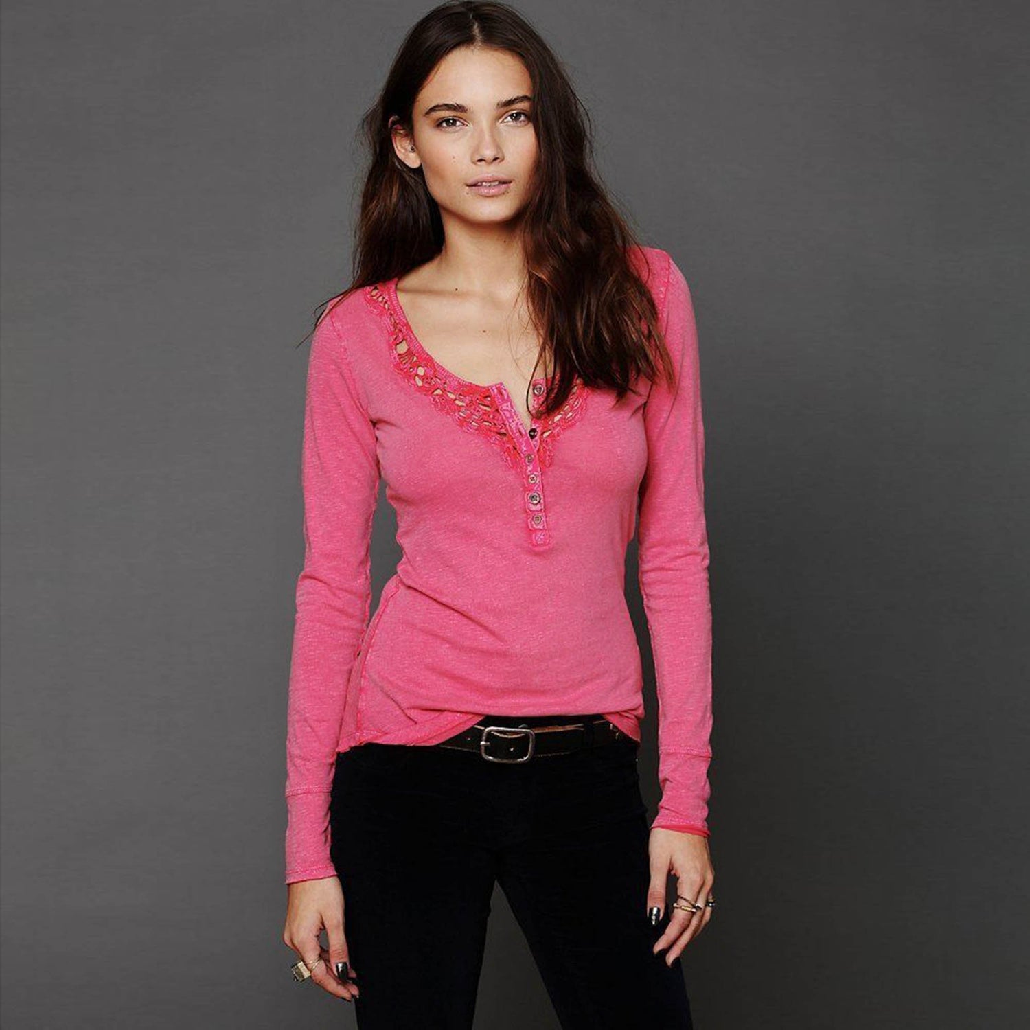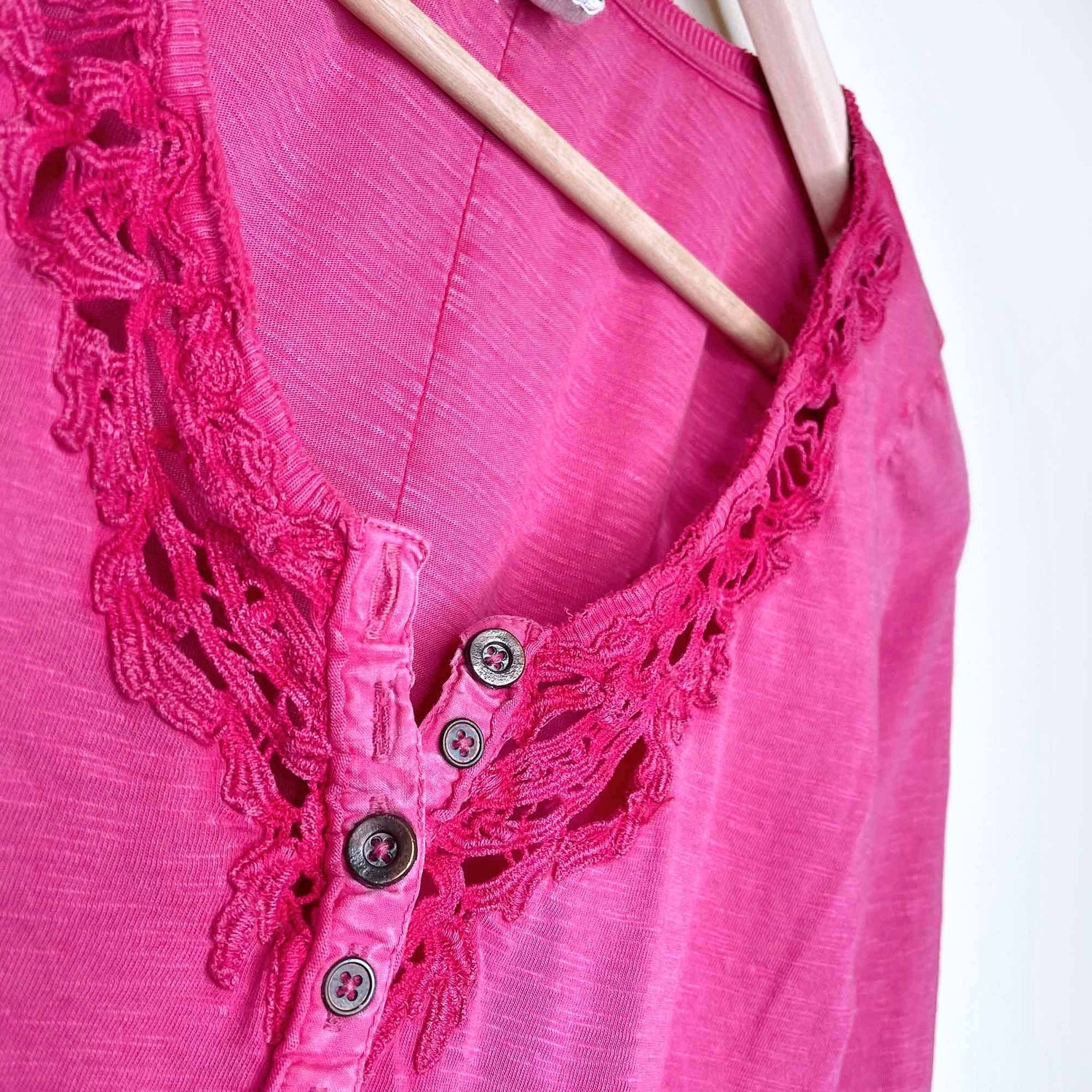 we the free lou legacy crochet henley long sleeve tee - size xs