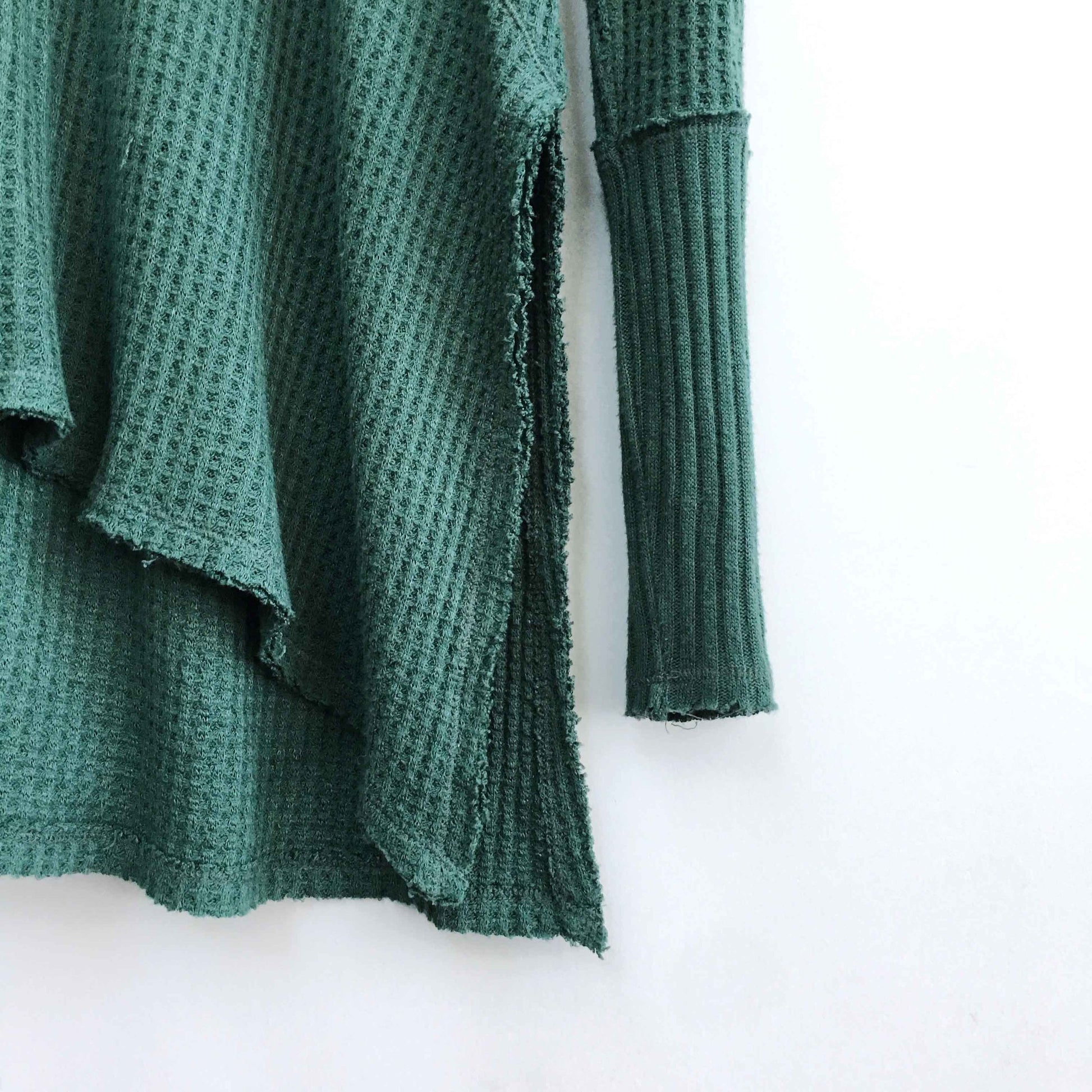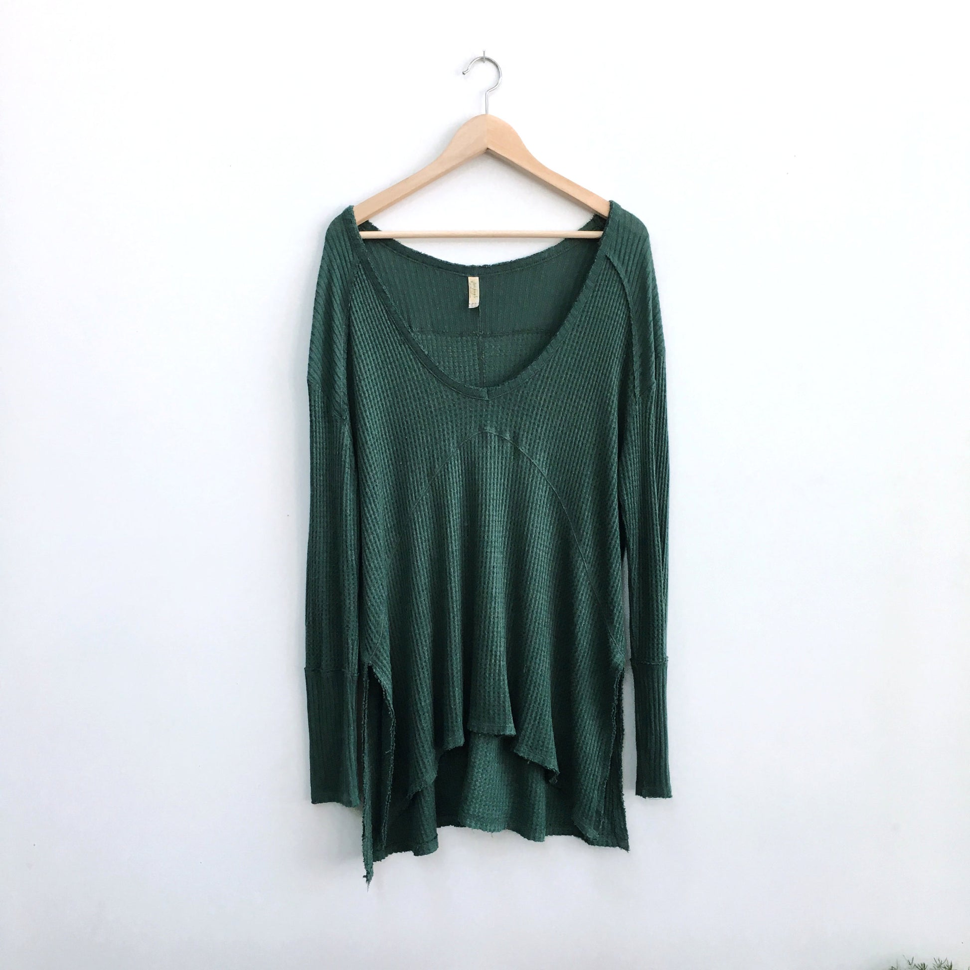 Item Description: So-soft drippy thermal in a yummy textured stretch fabric. Swing silhouette with subtle Hi-Lo hem and side vents. Stitch detailing along the seams. Ribbed neckline.