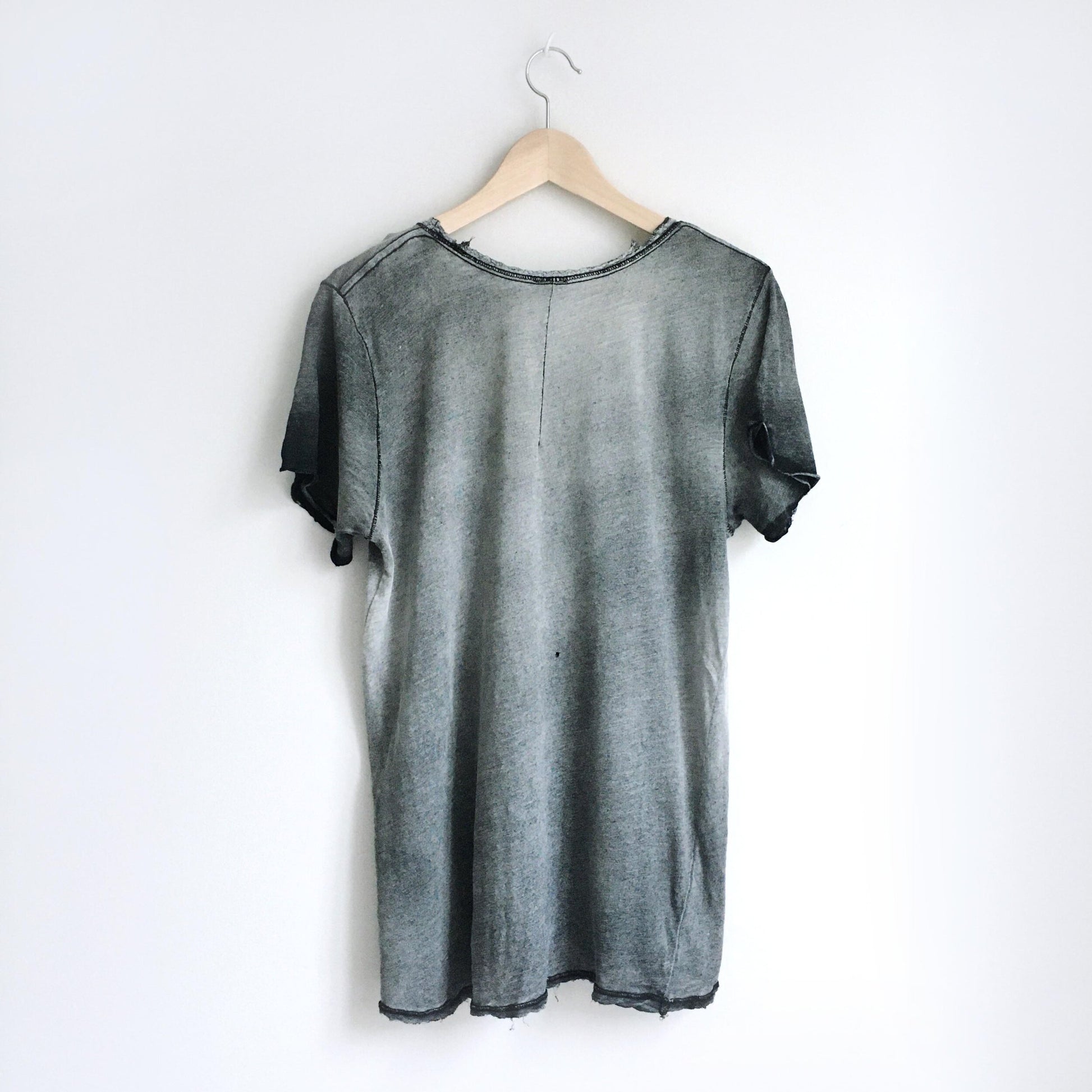 Item Description: This faded wash distressed v-neck tee fro We the Free is made from a linen blend and features a crochet trim with raw edge. 52% linen 48% cotton