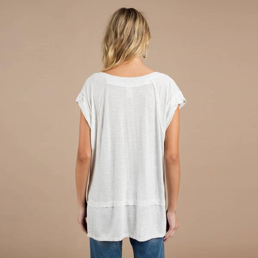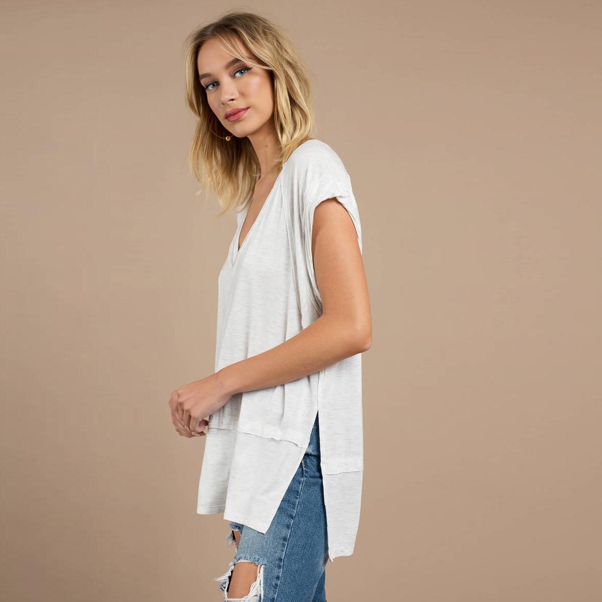 Item Description: lightweight slouchy tee in an oversized silhouette with high side slits. 95% Rayon 5% Spandex