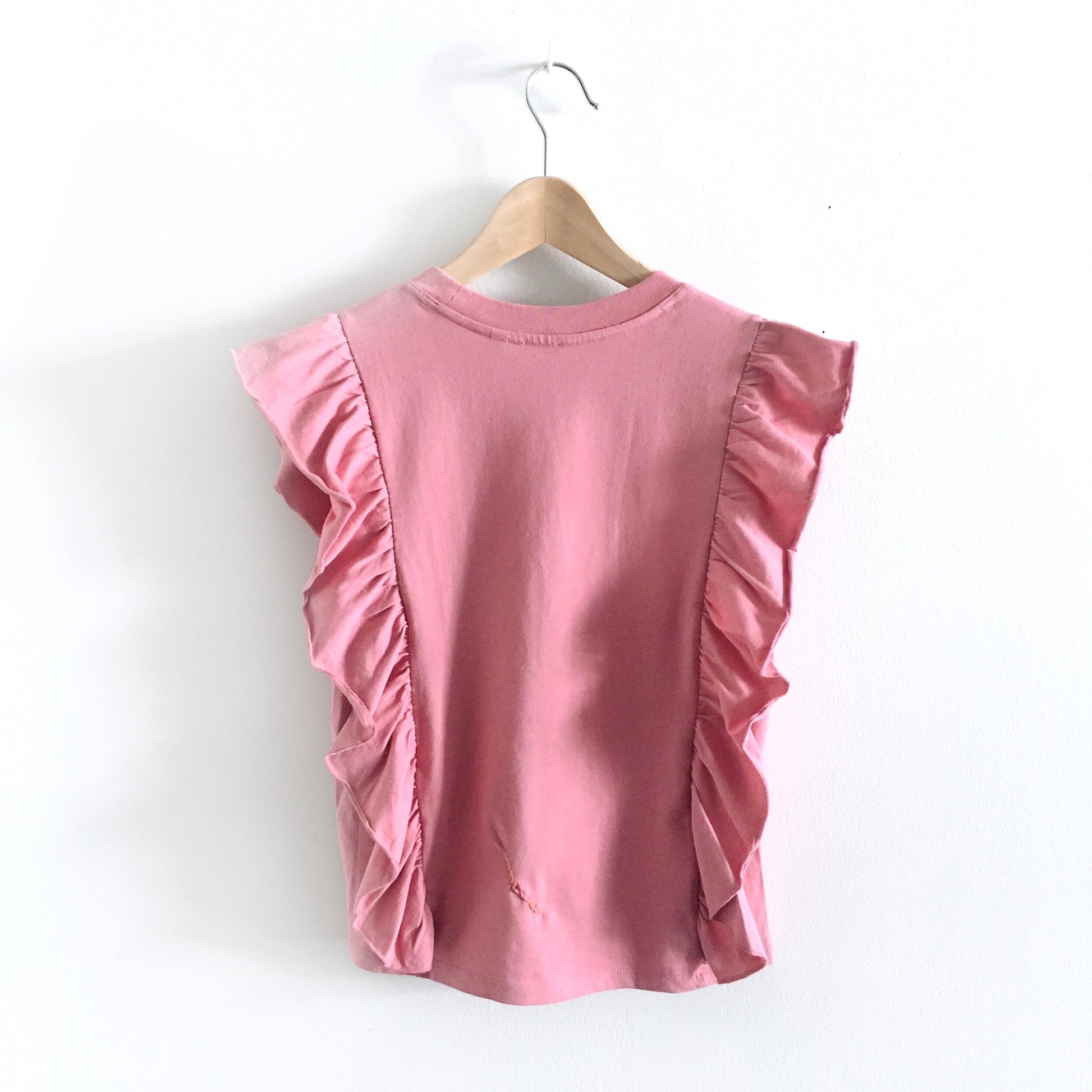 Item Description: An adorably chic staple from Aritzia, this sleeveless ruffle tee laid back girl vibes. 100% cotton