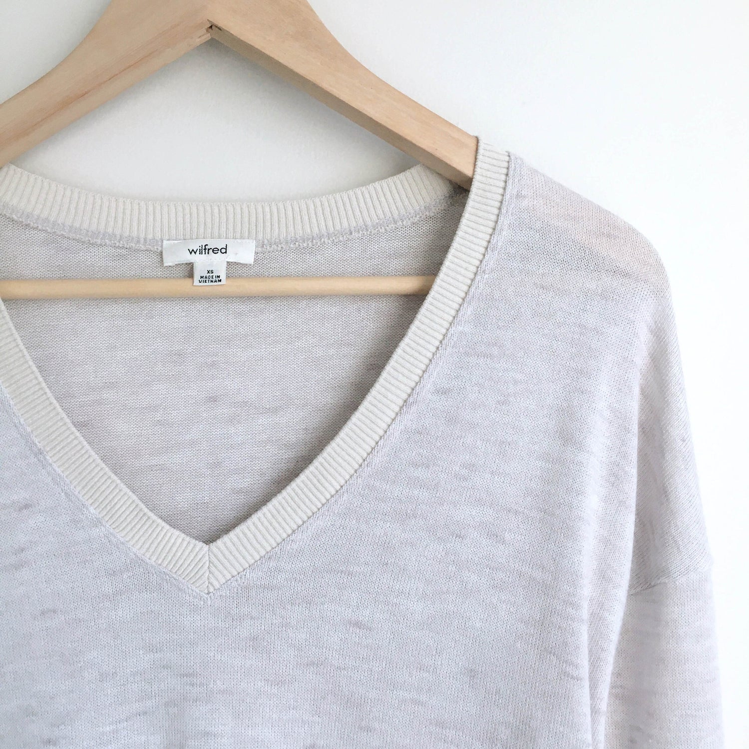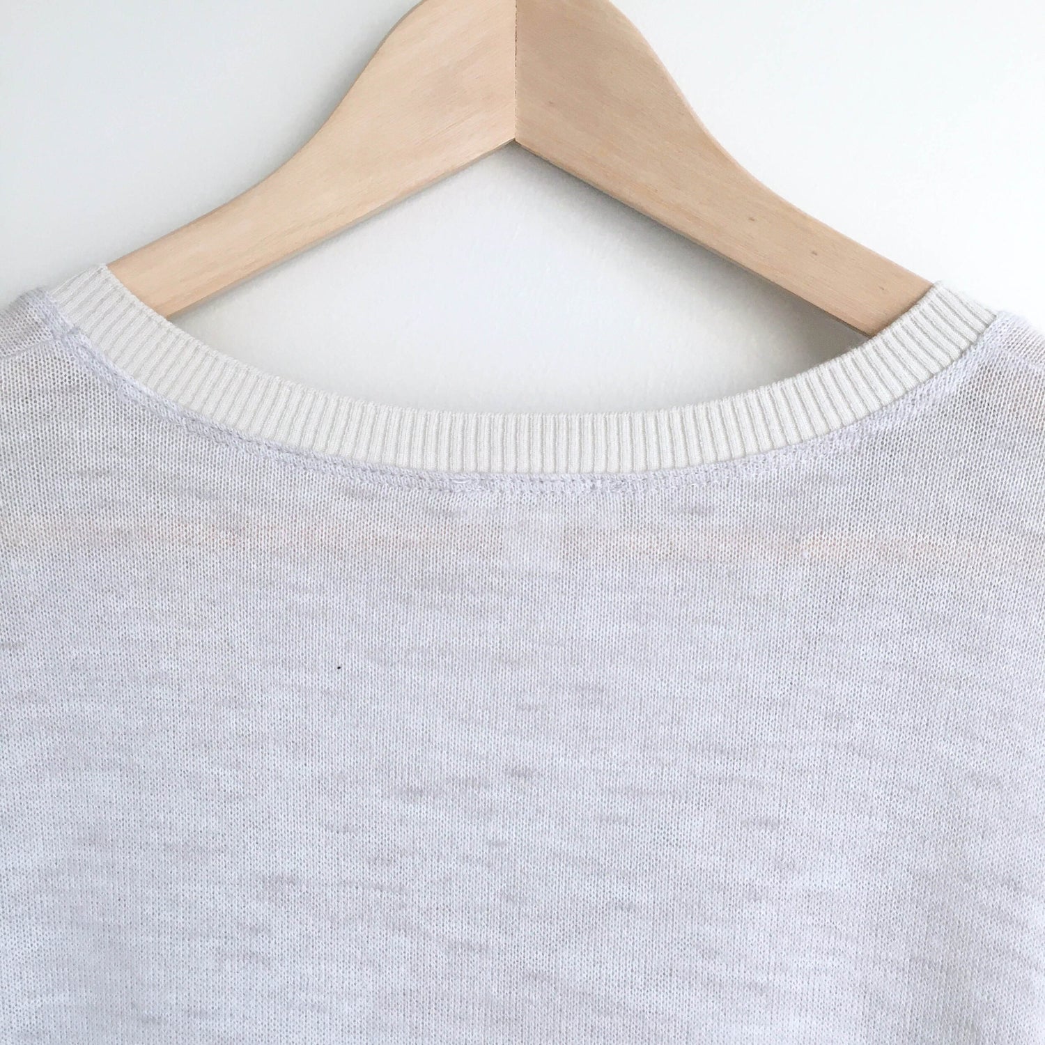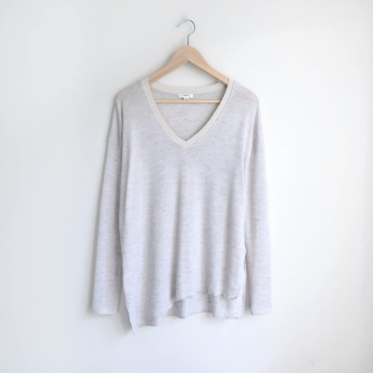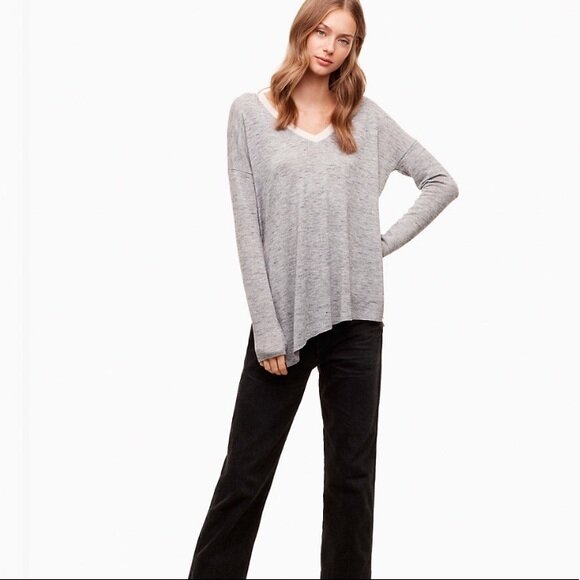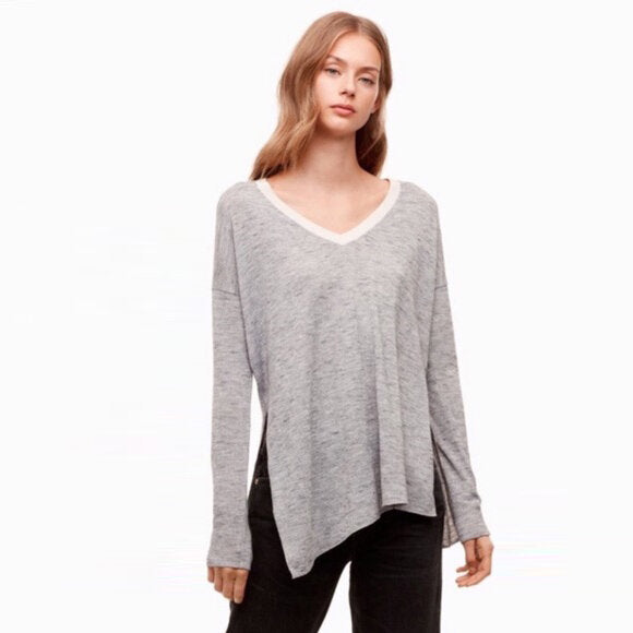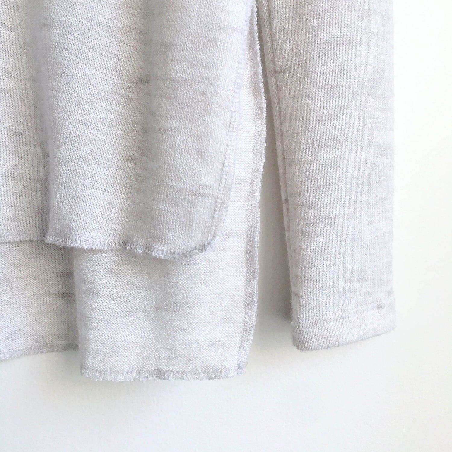Item Description: A tee that dares to be a little different. Cut from a lightweight marled jersey, this sweater-tee hybrid is perfect for every day. Asymmetric hem; side slits. V-neckline. Oversized fit. Long sleeves with dropped shoulder seams. 84% polyester, 12% rayon, 4% spandex. Hand wash.