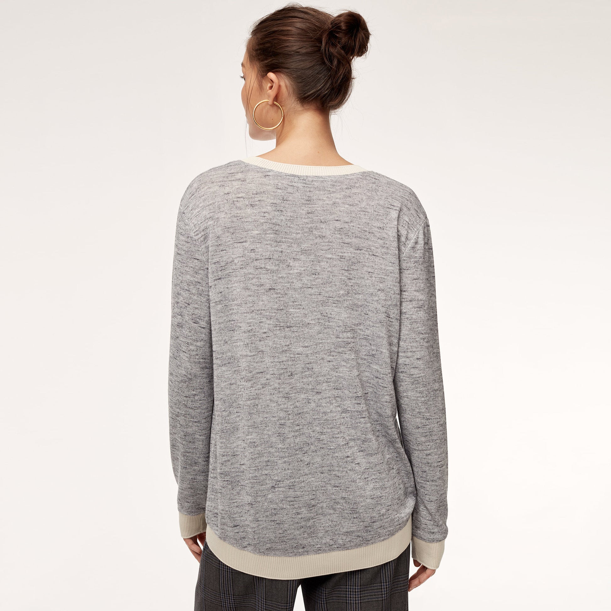 Item Description: A lightweight marled jersey for every day. Perfectly slouchy, this casual t-shirt/sweater hybrid is made from a special marled jersey with a warm feel. 84% polyester 12% rayon 4% spandex