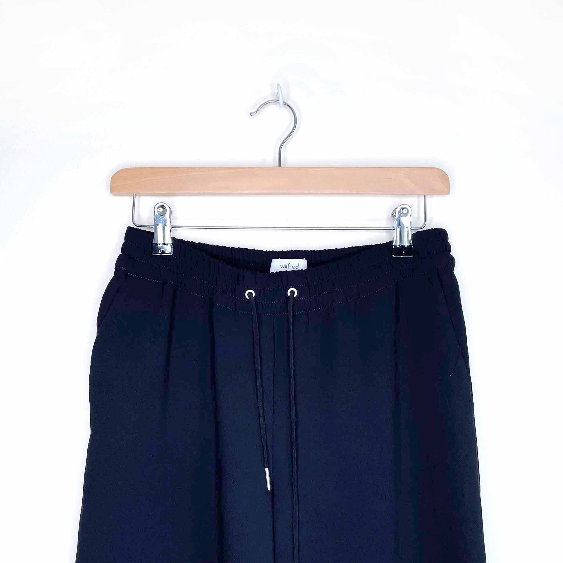 No actual jogging necessary. These joggers have a soft, elastic waist with a silk drawcord and ribbed cuffs at the ankles. They're made with a smooth Japanese crepe that has a matte finish and drapes beautifully. 100% polyester