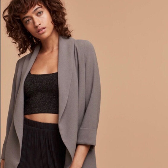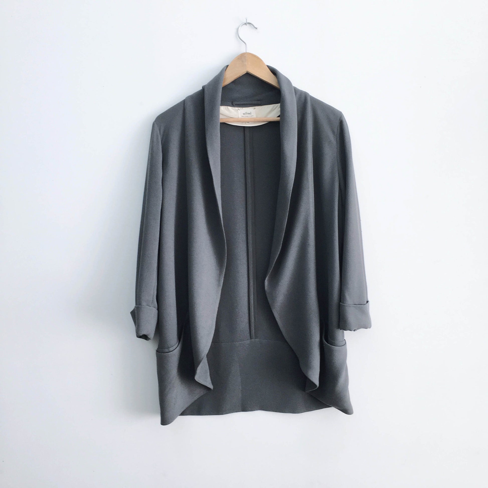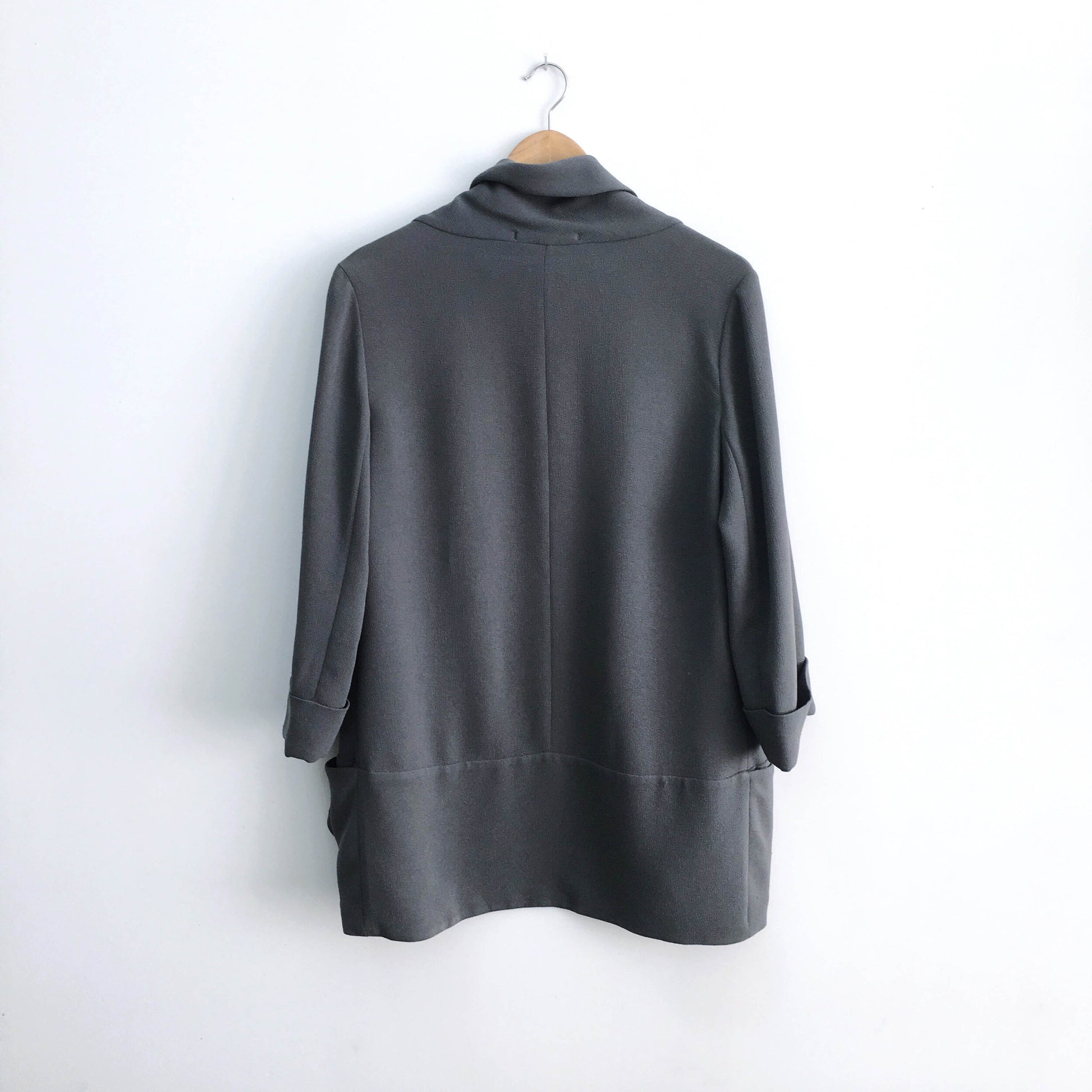 Item Description: Work ready, weekend approved. Nine o’clock, five o’clock, whenever. This is a tuxedo-inspired, open blazer with tacked three-quarter length sleeves. It’s made with a textural double-cloth crepe.