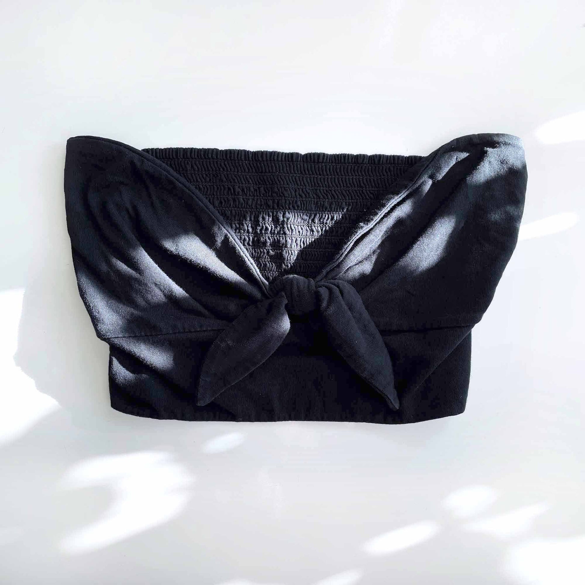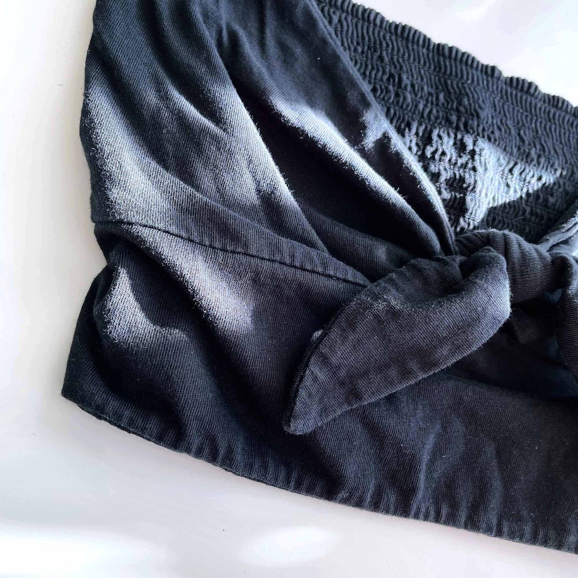 Item Description: One knot away from naked. Just what you want for rising temps. This is a smocked, double-lined tube top with a front knot, and cut-out details. It's made with a soft cotton jersey. Can we work backwards. Smocked back for a snug fit. 100% cotton