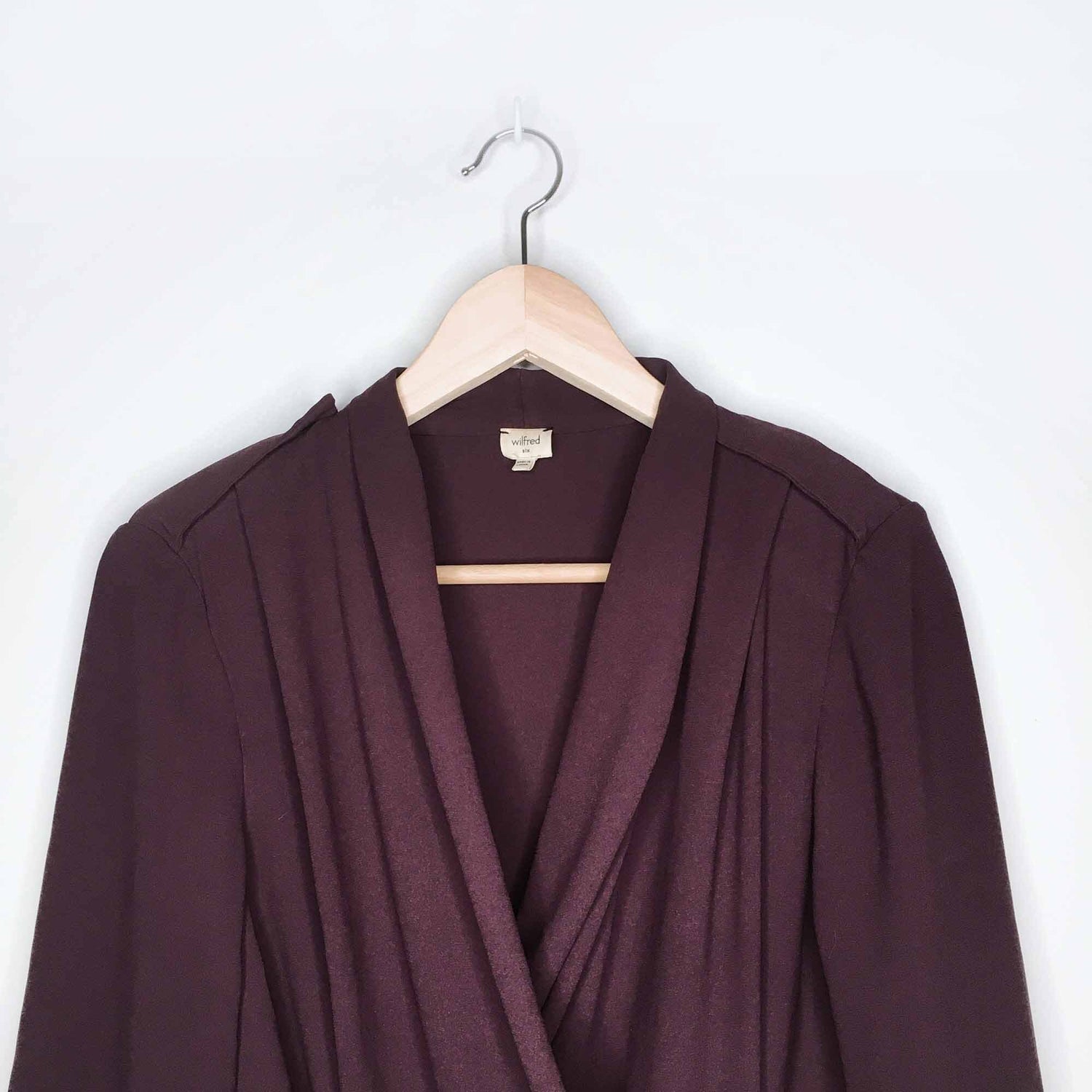 Item Description: This Franca wrap dress from Aritzia’s Wilfred has beautiful draping. Features ruched shoulders, a wrap front that ties at the side, long sleeves and side pockets with a length that hits just above the knees. 100% polyester