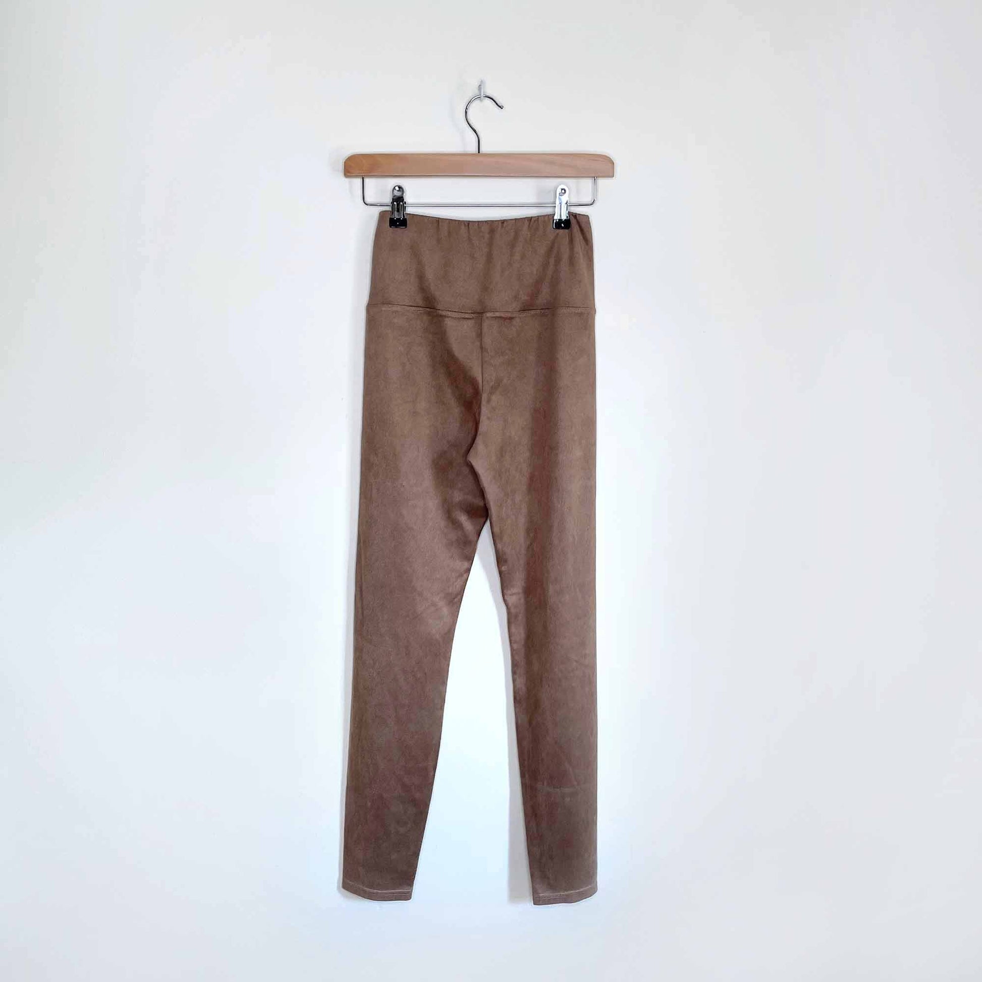 Item Description: Vegan suede that keeps its shape — and subtly sculpts yours. One of our most-loved pieces ever. These leggings are made our richly textured vegan suede — supple, stretchy and contours to your body without bagging out. 90% polyester, 10% polyurethane