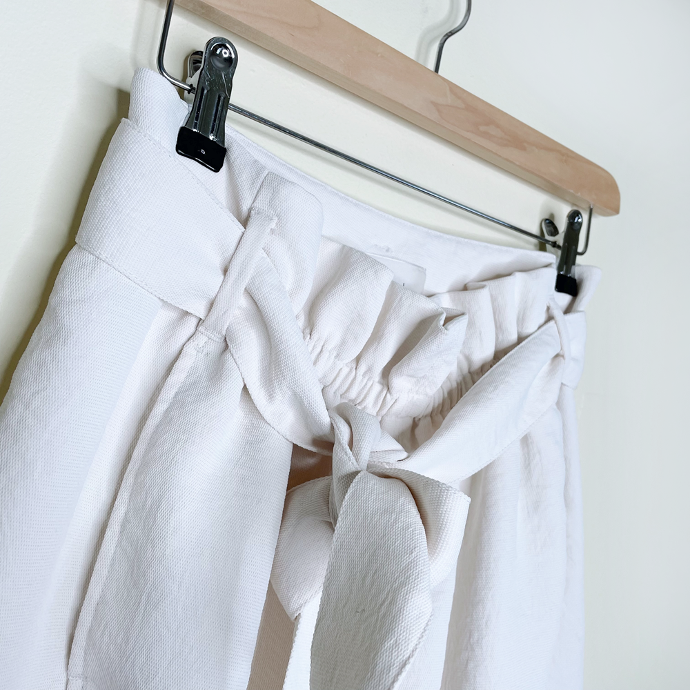 Tags: trouser, work, career, elegant, formal, cream, white, off white, high waisted, tie belt, pockets, business casual, neutral, minimal