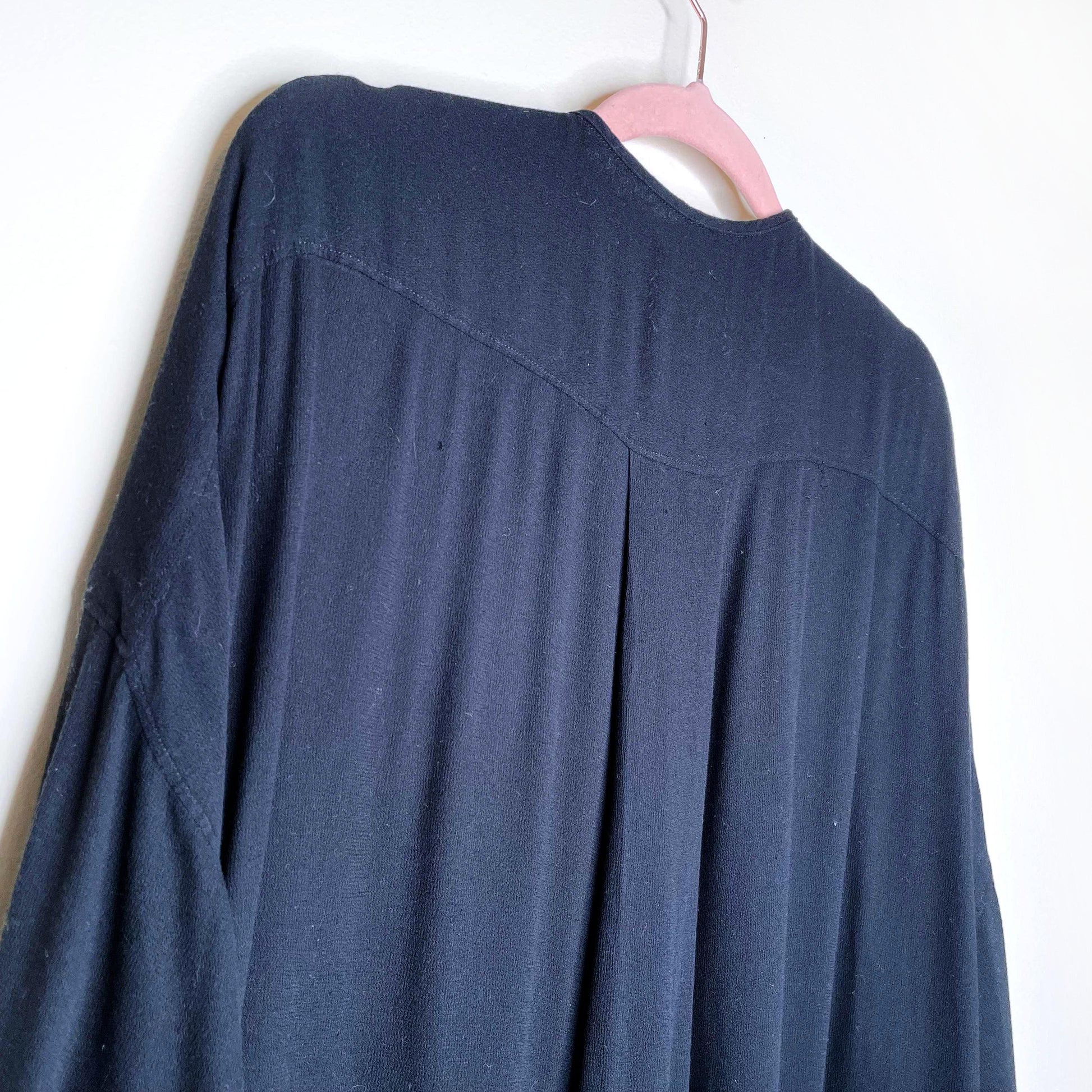 Item Description: This oversized lightweight tunic from Aritzia's le fou features a collarless top and long body with a minimalist aesthetic. 100% rayon