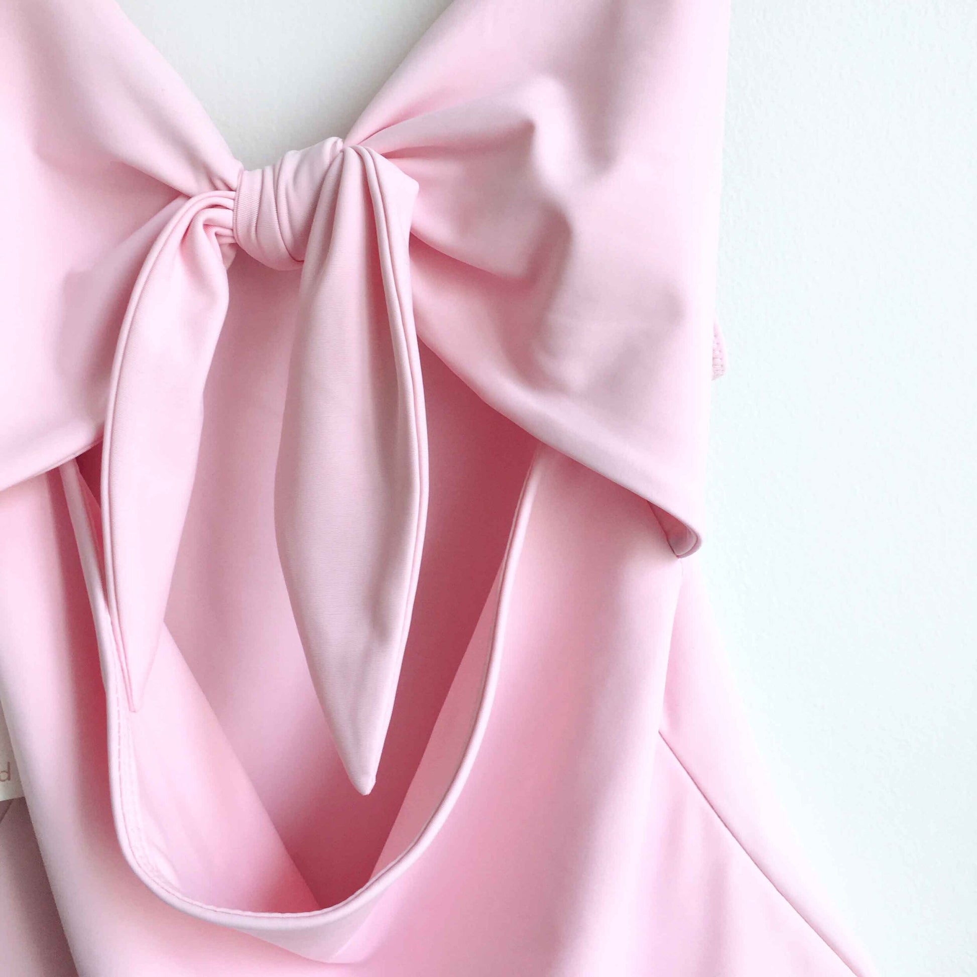 Item Description: Swimsuit, bodysuit, whatever. Double duty. Made with a stretchy fabric that hugs you in, this bodysuit can also be worn as a swimsuit. It has a cut-out design, self-tie in the front and adjustable straps. 78% nylon 22% spandex Colour: Magnolia