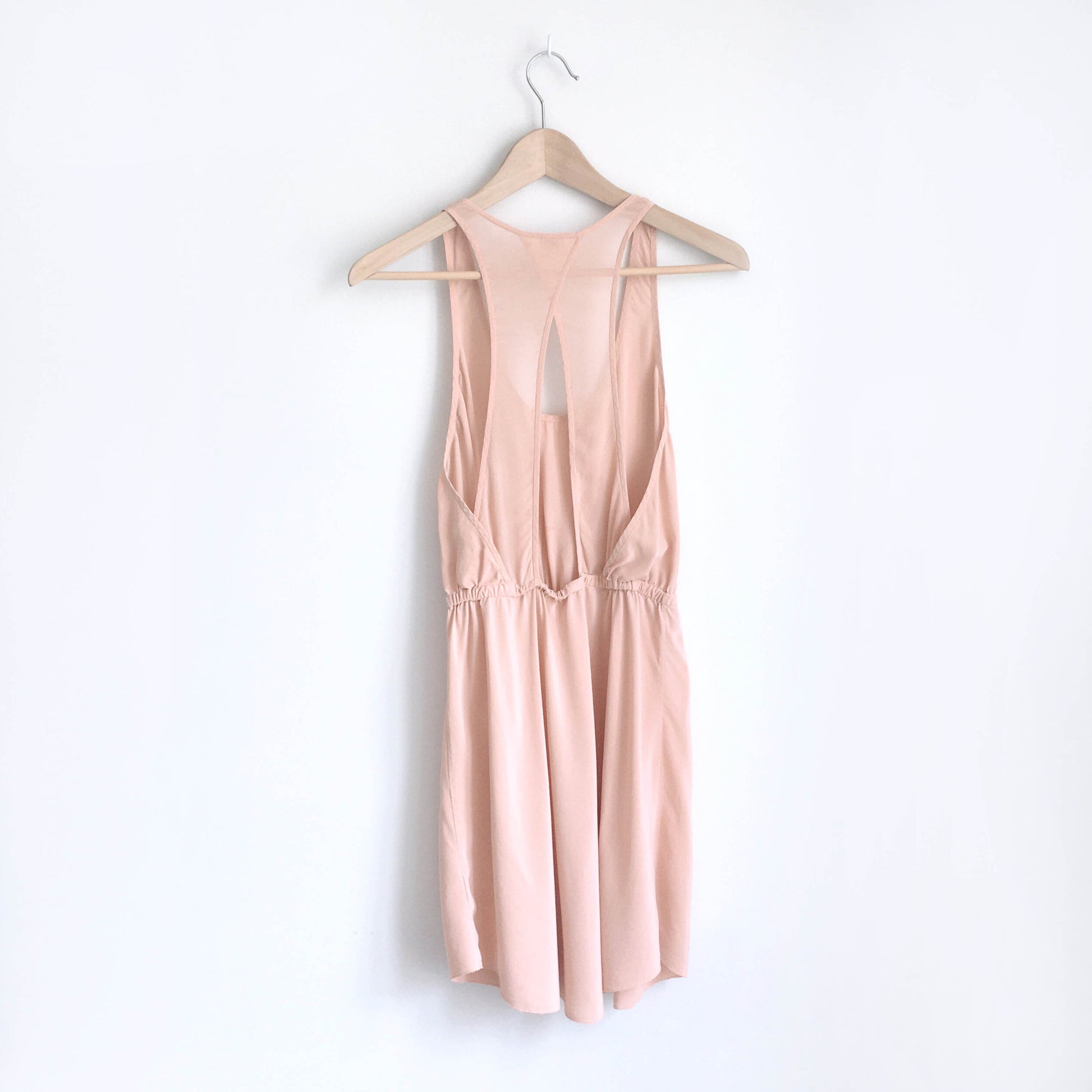 Item Description: This perfect summer peach silk dress from Artizia featues a crossover sheer open back with elastic waist and front pocket. 100% silk