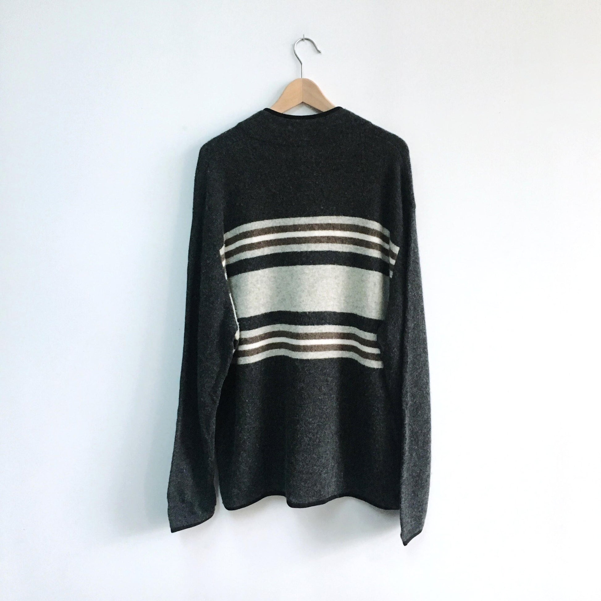 Item Description: This 1/4 snap-button popover sweater offers cozy style that makes a statement with classic stripes over the chest in neutrals. Finished with Woolrich logo stamped buttons. 78% lambswool 22% cotton
