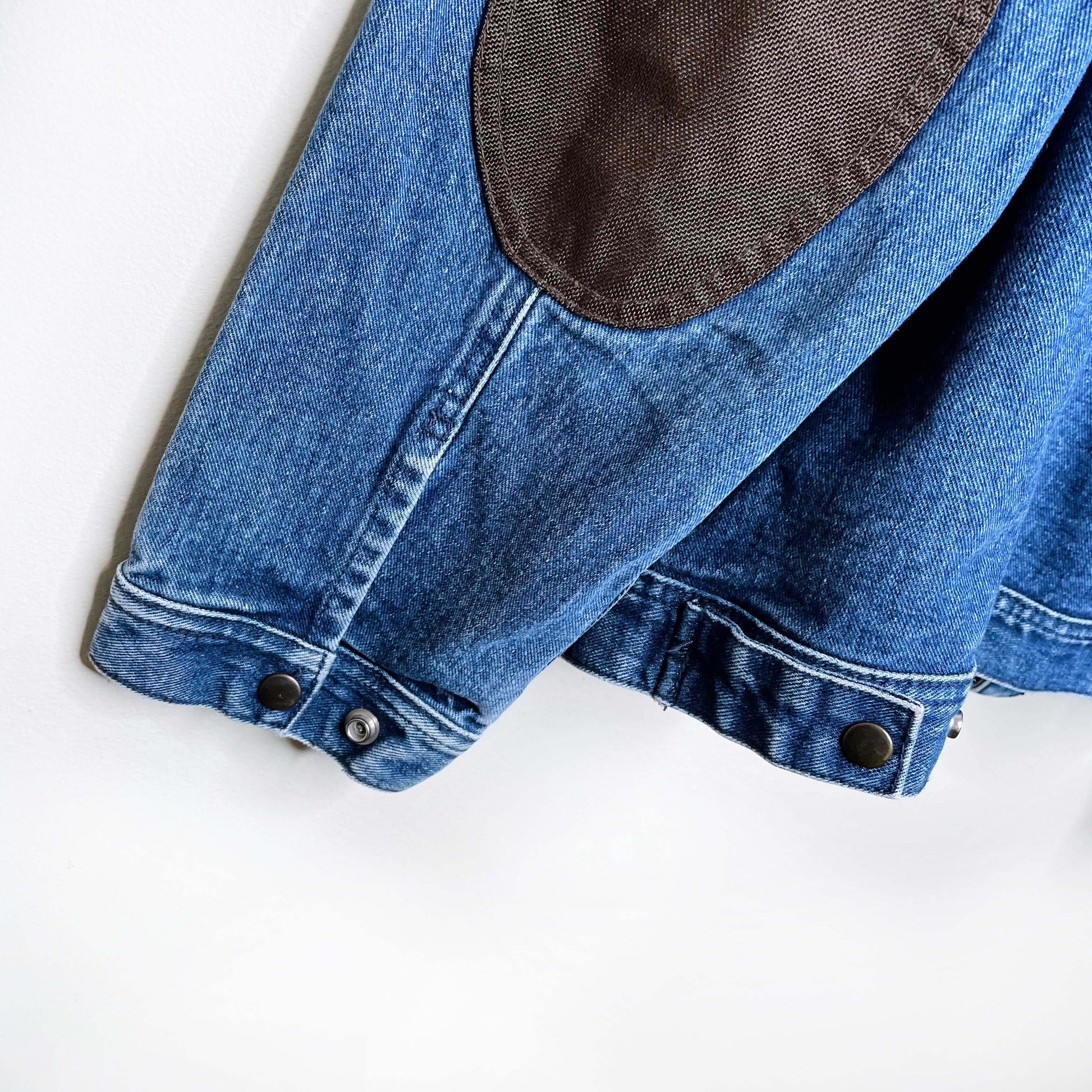 Item Description: This jean jacket from Dakota takes awesome to the next level with a brown collar and matching elbow patches, and best of all - zip off sleeves. Plus an inside pocket for your cell phone or keys. 100% cotton