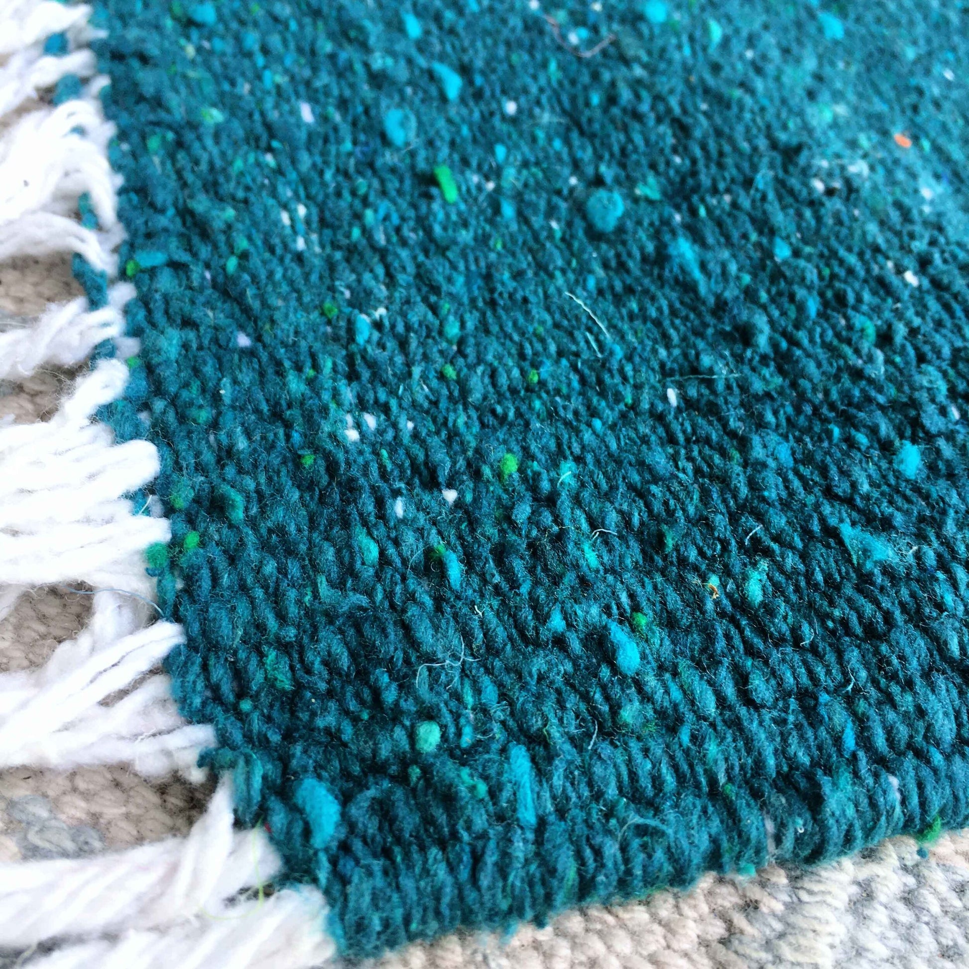 Item Description: This small wall tapestry / floor rug features a classic Zapotec fish-in-fish design in bright colours, sure to liven up your home.