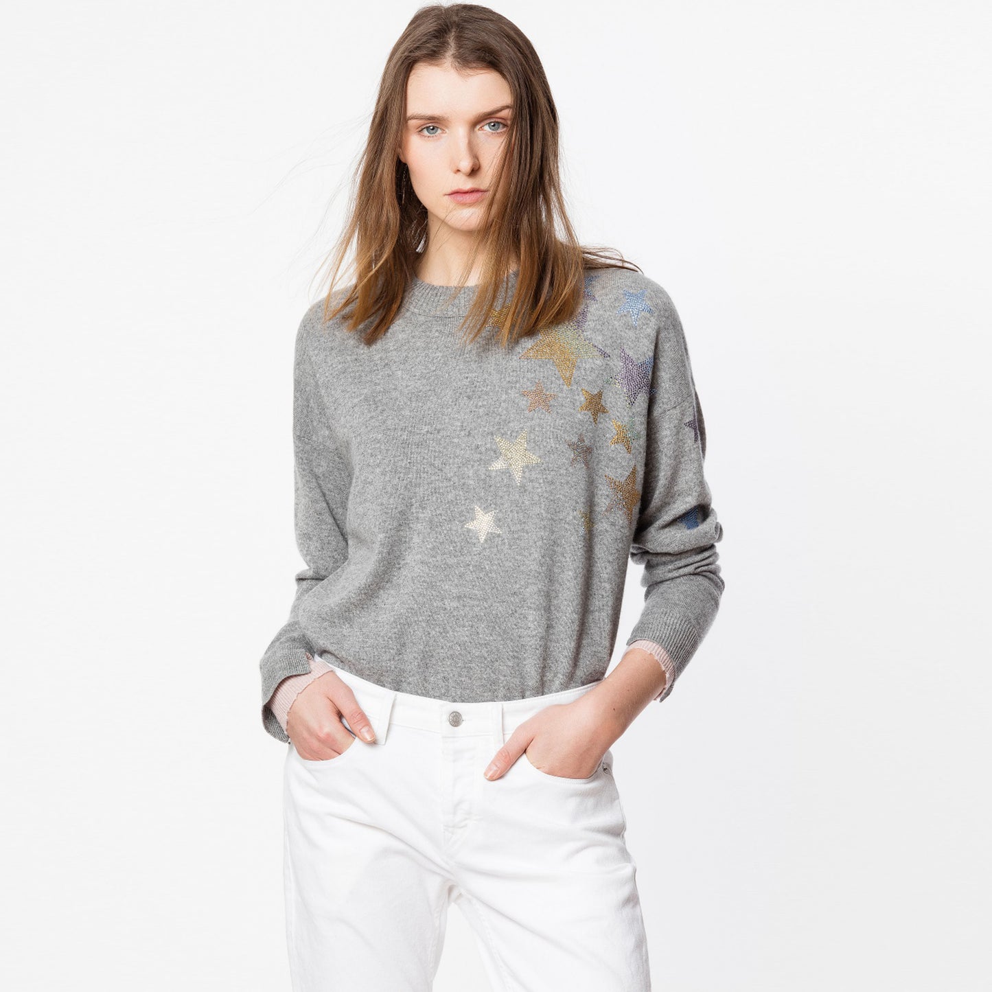 Item Description: Lightweight knit with layered cuffs, this 100% cashmere sweater from Zadig & Voltaire features crystal embellished stars in a soft cashmere knit.