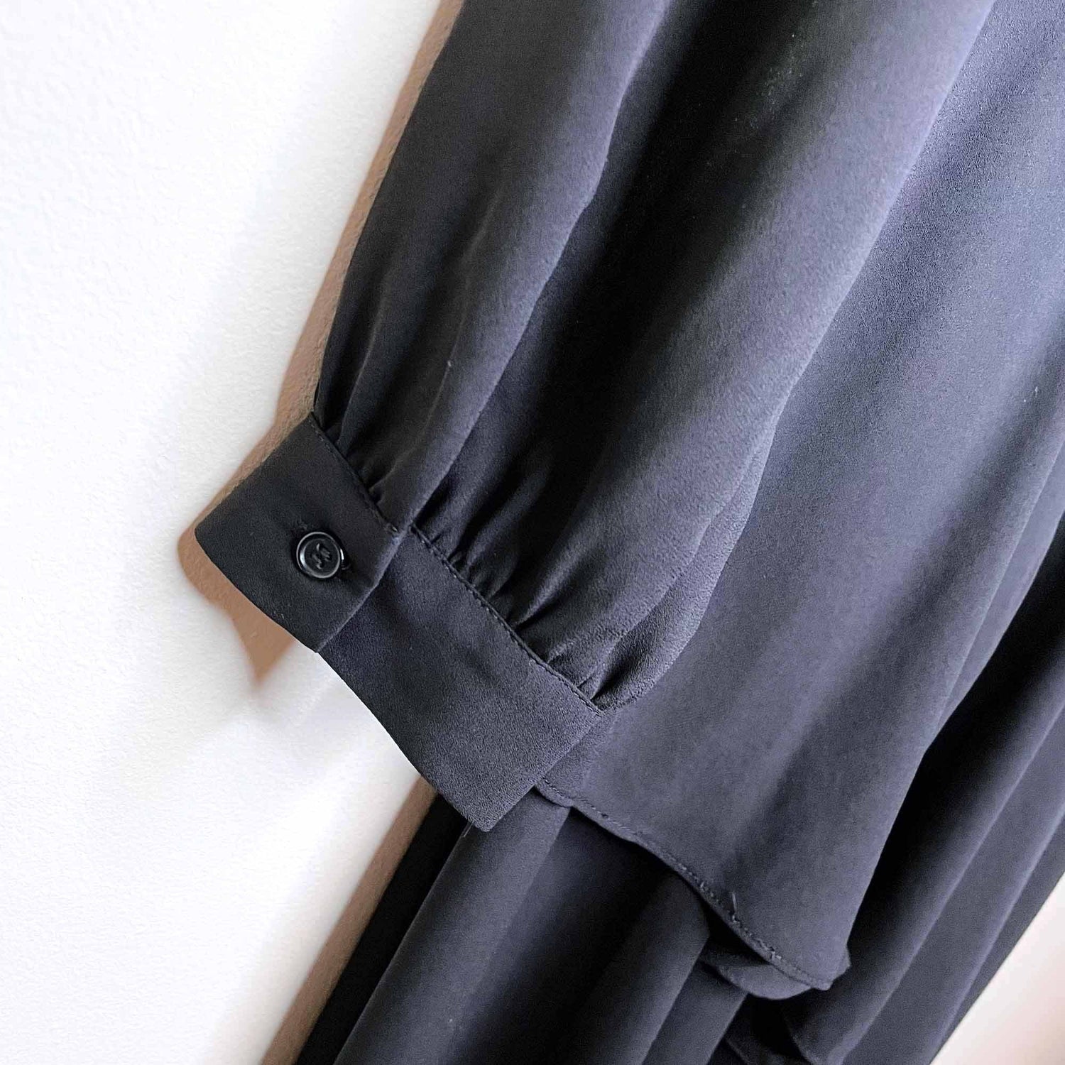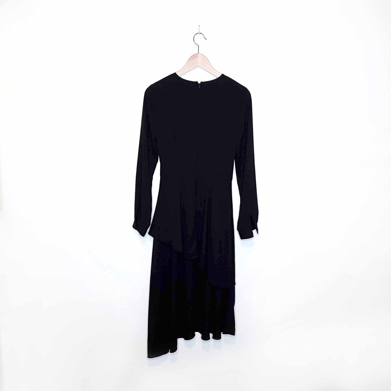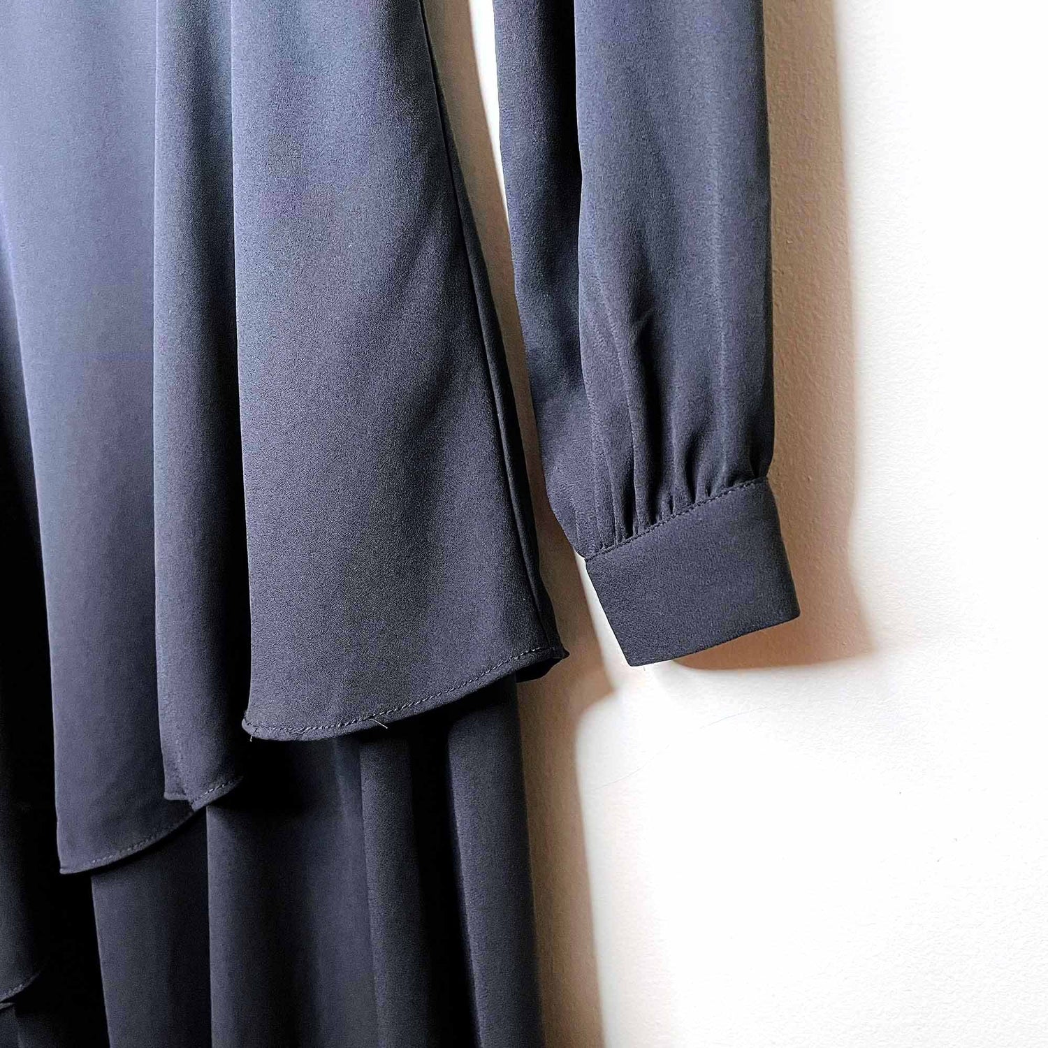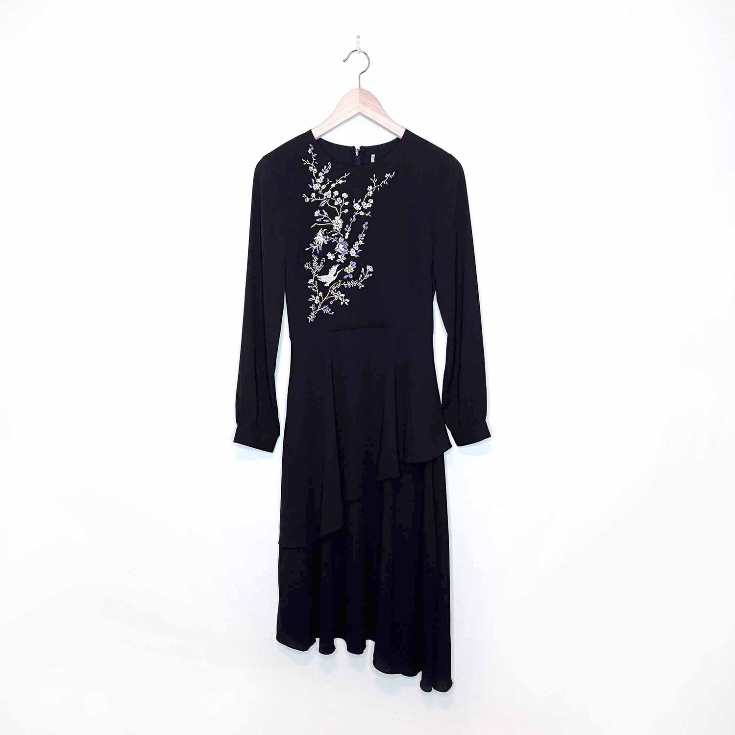 zara black floral embroidered tiered chiffon long sleeve dress - size xs