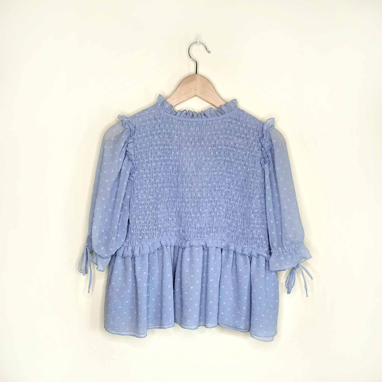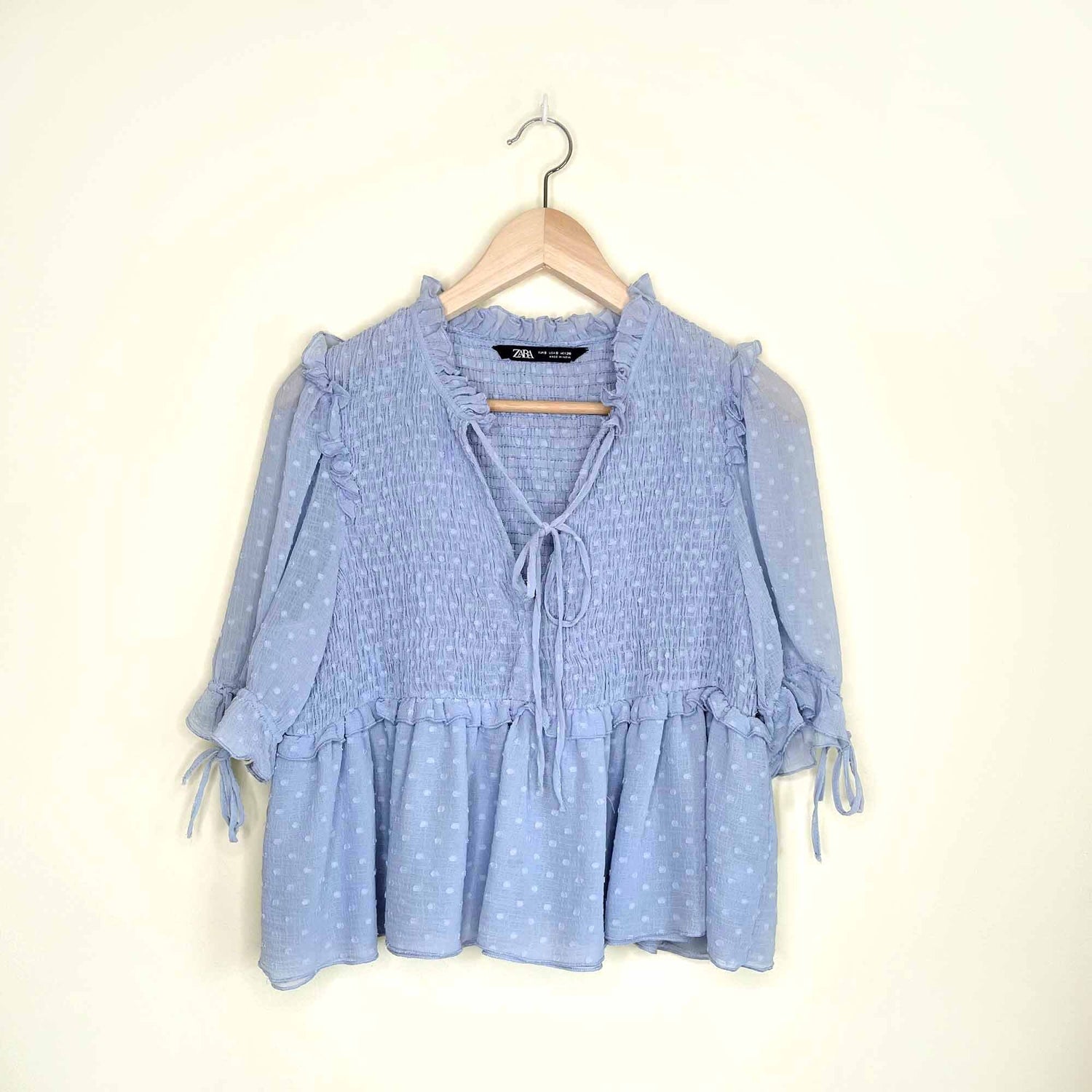 zara boho lavender swiss dot cropped babydoll blouse - size small