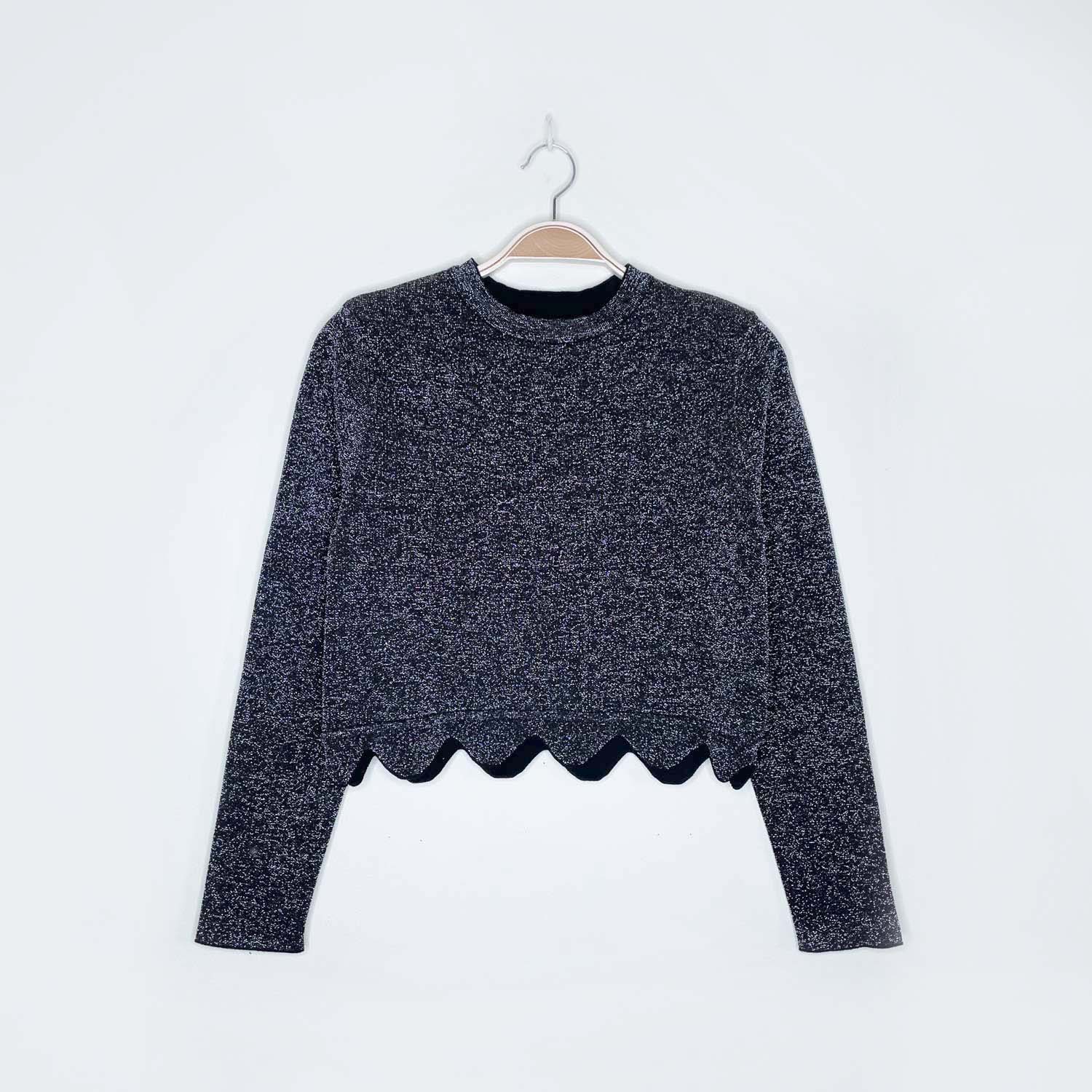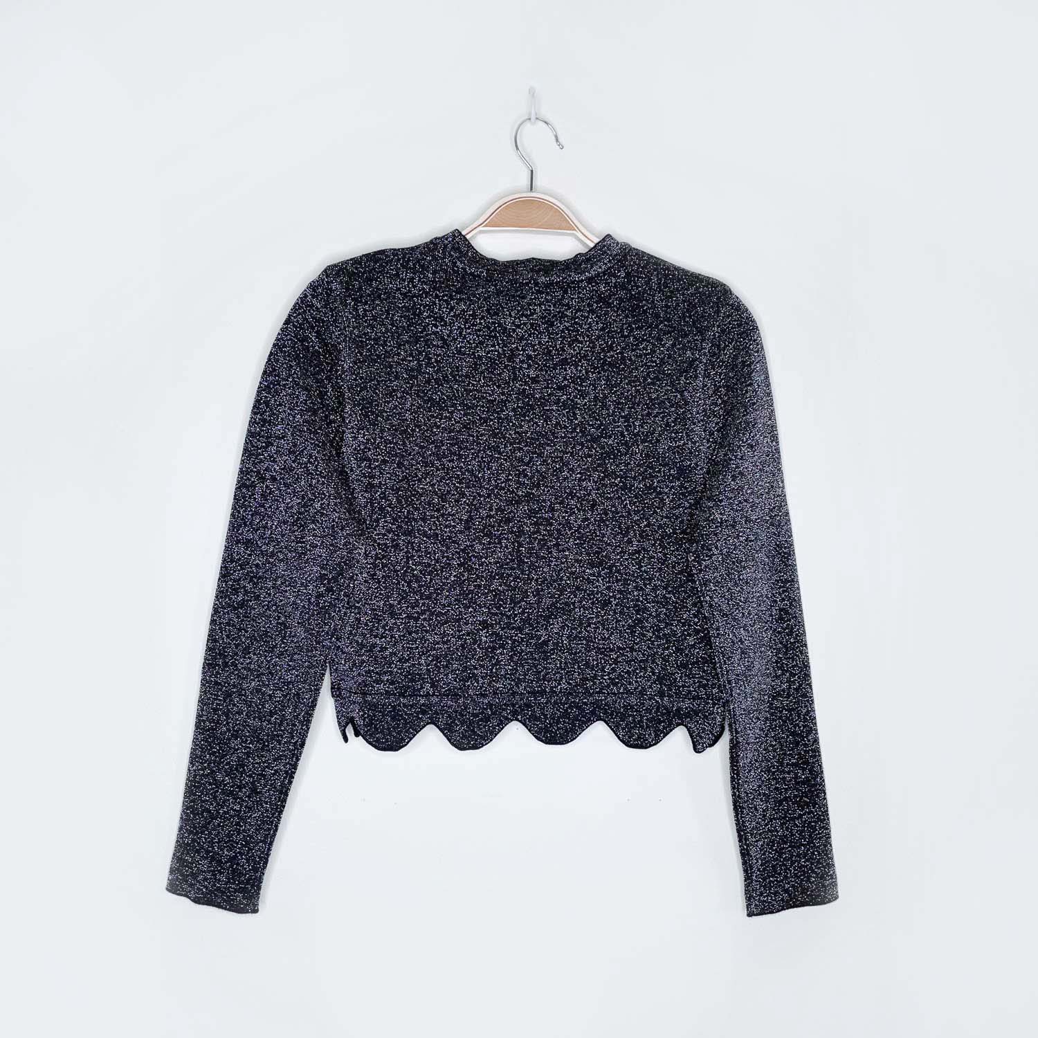 zara knit black metallic cropped scallop hem long sleeve - size small