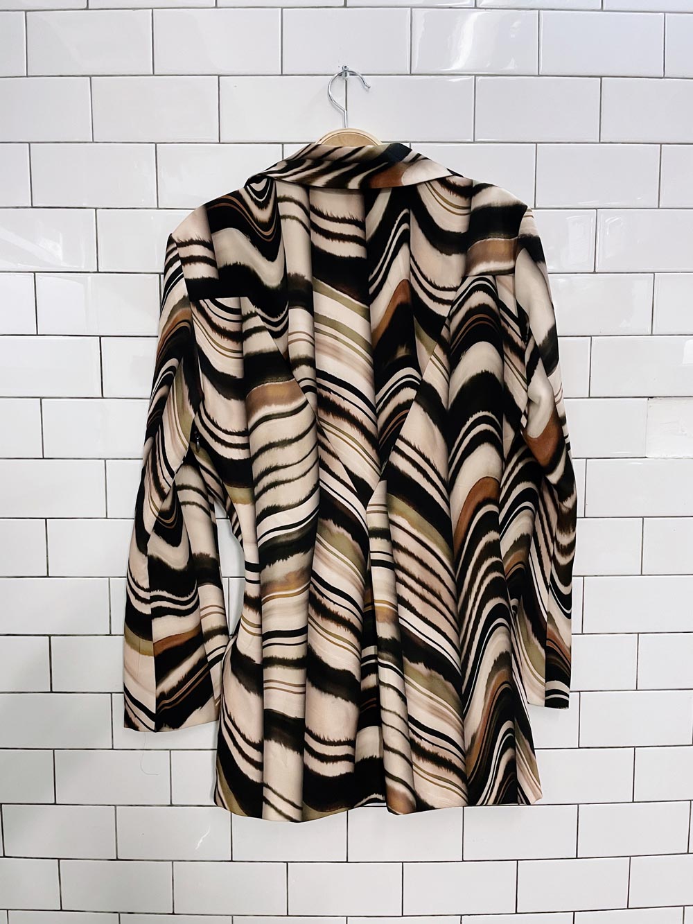 Shopping online can be tricky, we get it. Here’s our expert tip: find an item of clothing you own - if you’re looking at blouse on our website, find a blouse in your closet that you like the fit of - and measure across the chest from armpit to armpit. If it's a pair of pants, measure the waist across at the top. We usually provide a measurement in the listing to help you compare against something you already own. Some of our older listings don't have this, so if it’s not there - usually when it’s a modern item - it’s best to visit the brand’s size guide to get a better sense of fit.