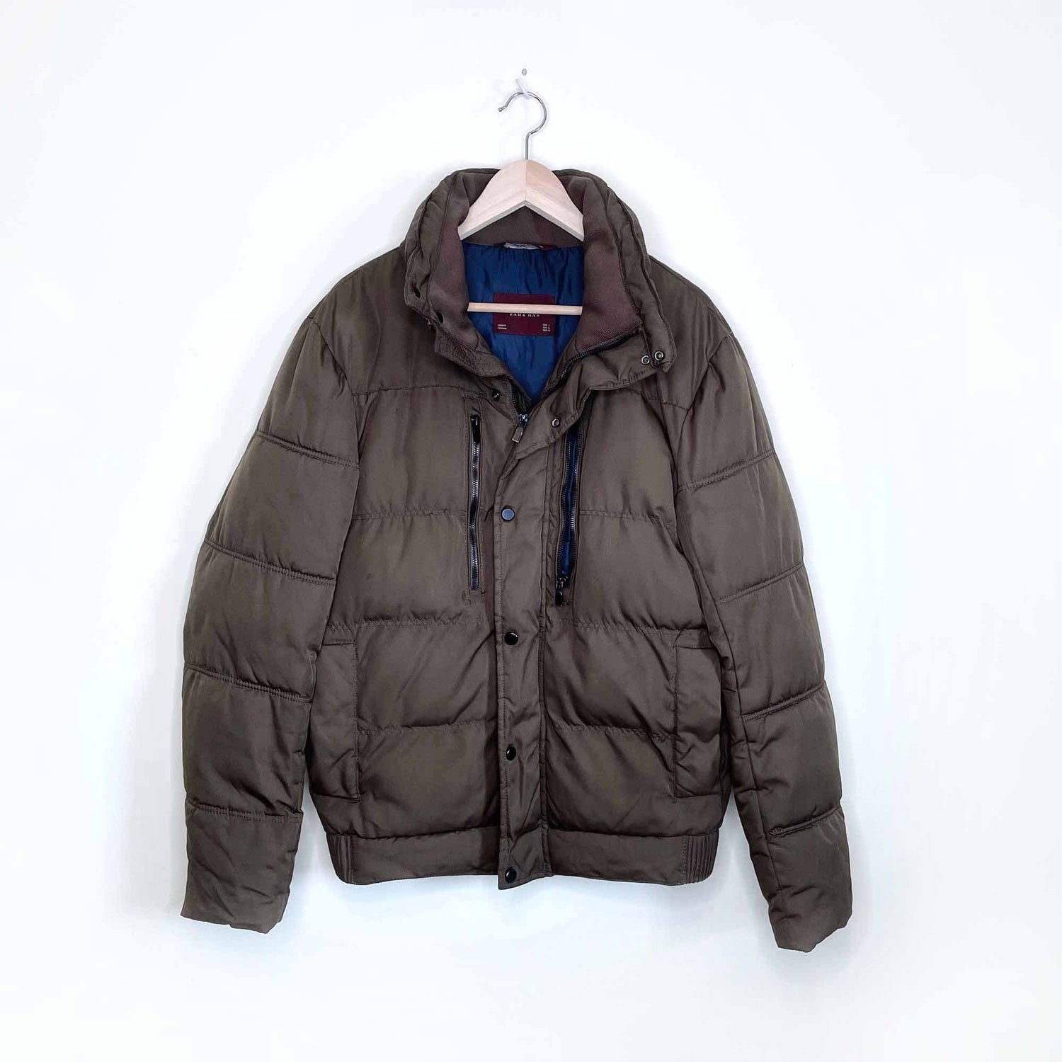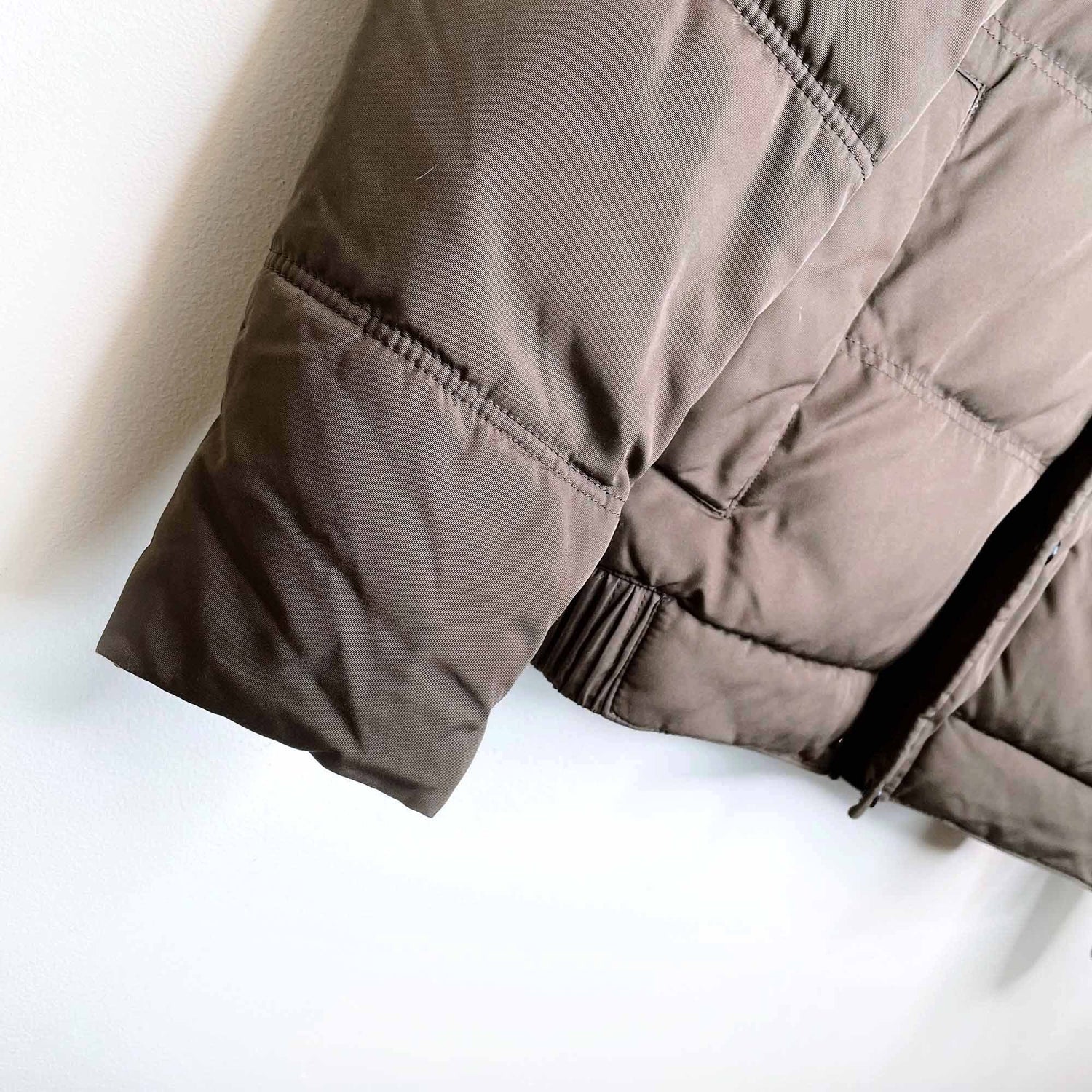 Condition: GOOD 7/10 - front pocket zipper broken on right side, mark on back left shoulder and small rip on front near chin area when zipped up