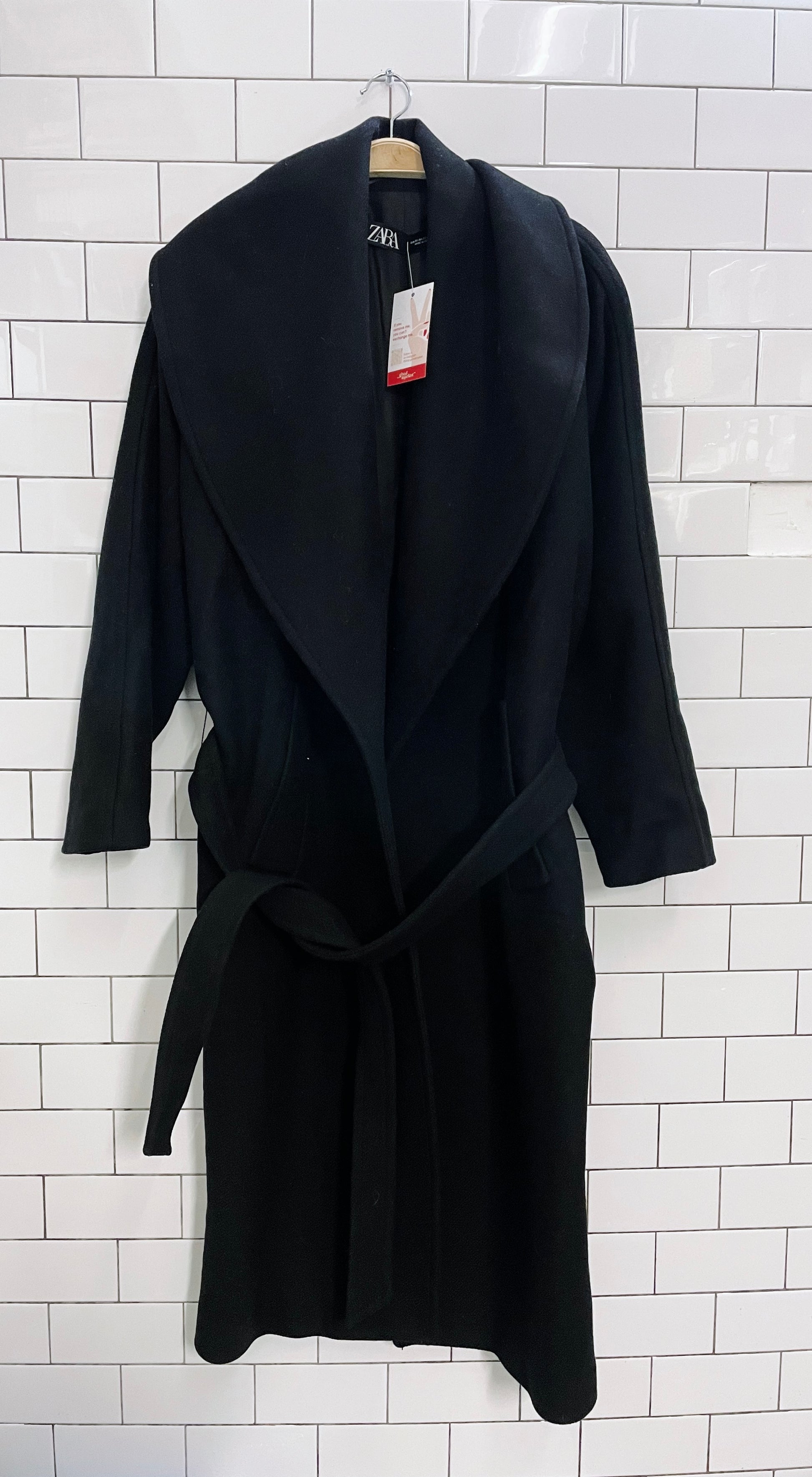 zara manteco oversized black long belted coat