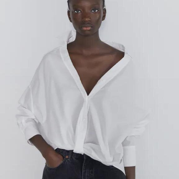 zara oversized white button down dress shirt - size small