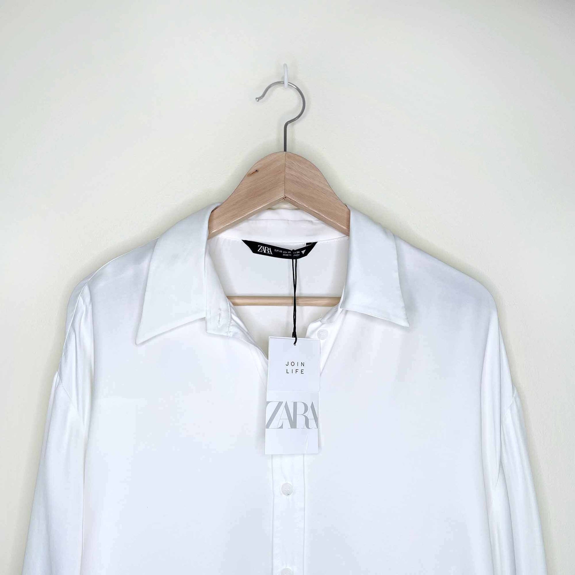 zara oversized white satin button down shirt - size xs