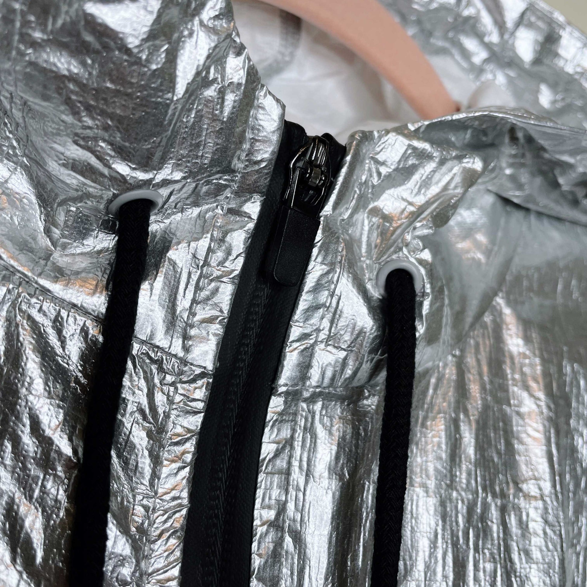 Item Description: This eclectic jacket from Zara is an activewear statement piece for sure. Resist the elements (rain, wind, etc) and pair with black leggings and sneakers and a baseball hat. No content tag.